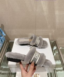 Leather foot pads are flat and gray in color-23Ss Autumn/Winter New Dior One Word Hairy Slip06k5pyoo