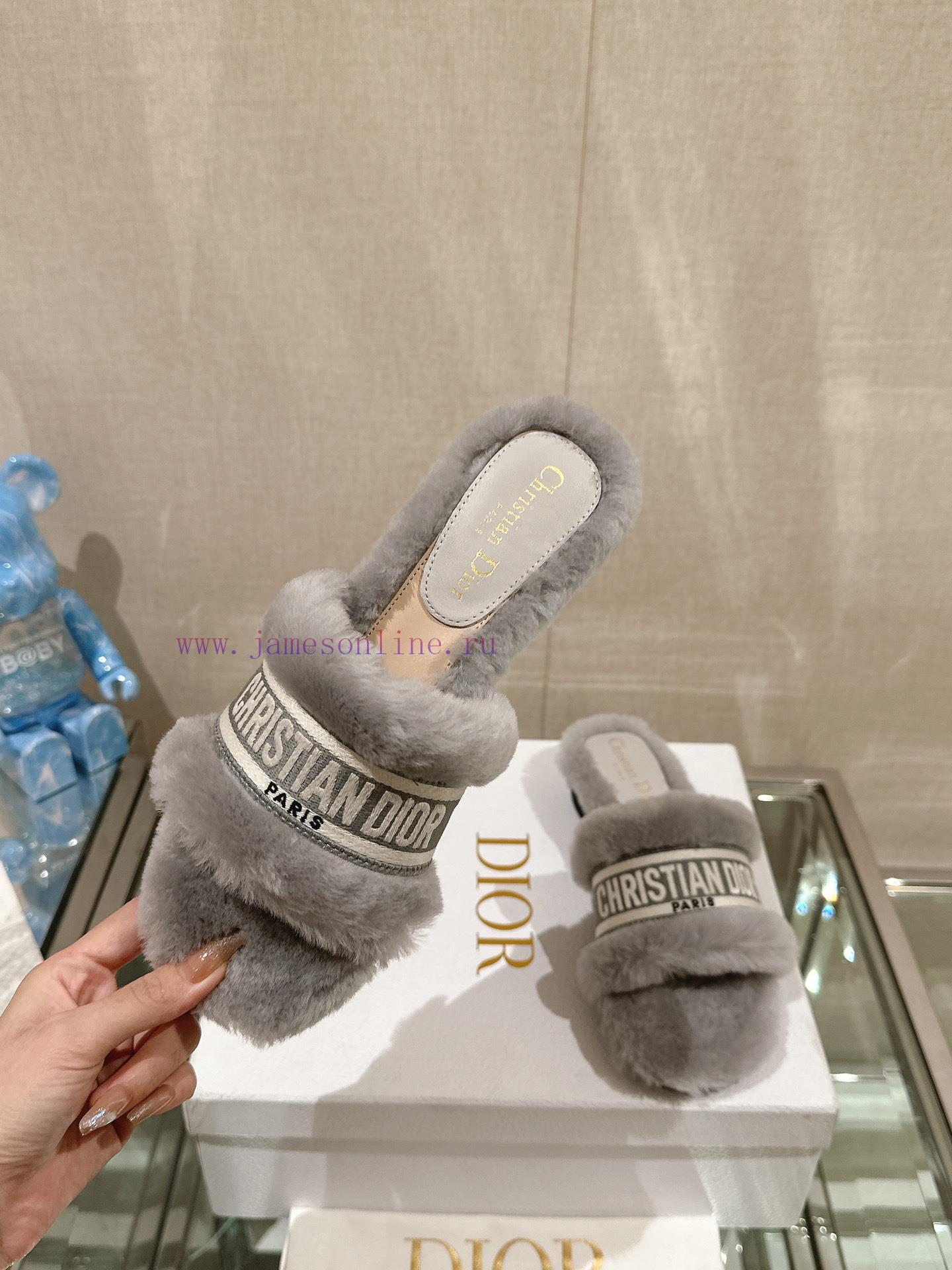 Leather foot pads are flat and gray in color-23Ss Autumn/Winter New Dior One Word Hairy Slippers CollectionThis is an elegant piece, featuring wool and classic embroidery craftsmanship to showcase its exquisite charmWoolen shoe upperInner woolFollow Gao Ping with a height of 6.5cm/8cmOriginal rubber soleSizes 35-3940,41,42 are customized and non refundable