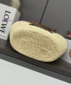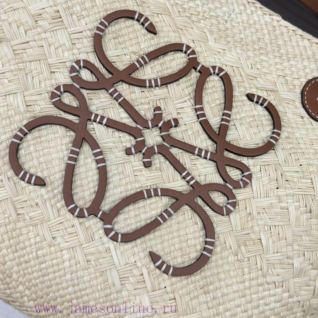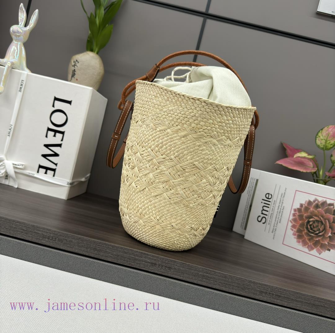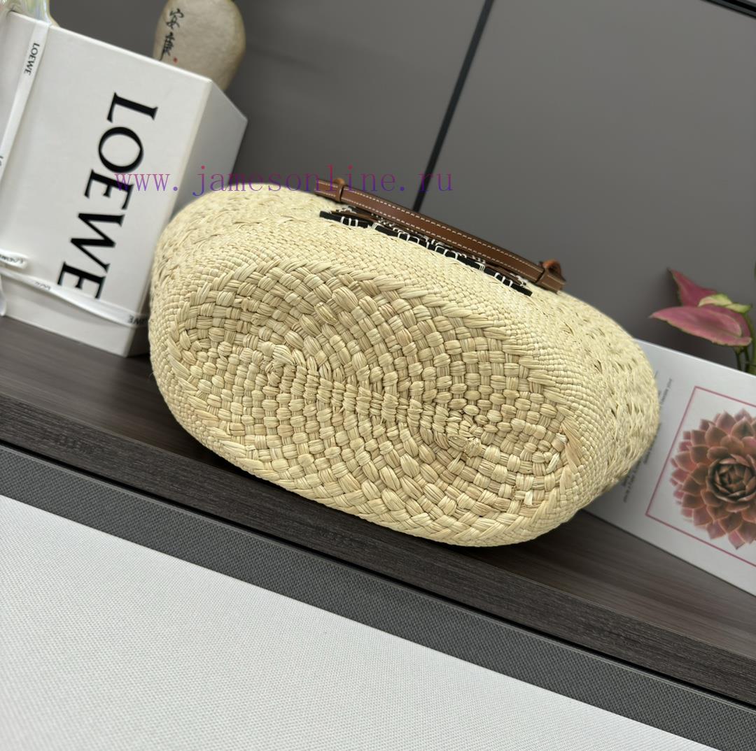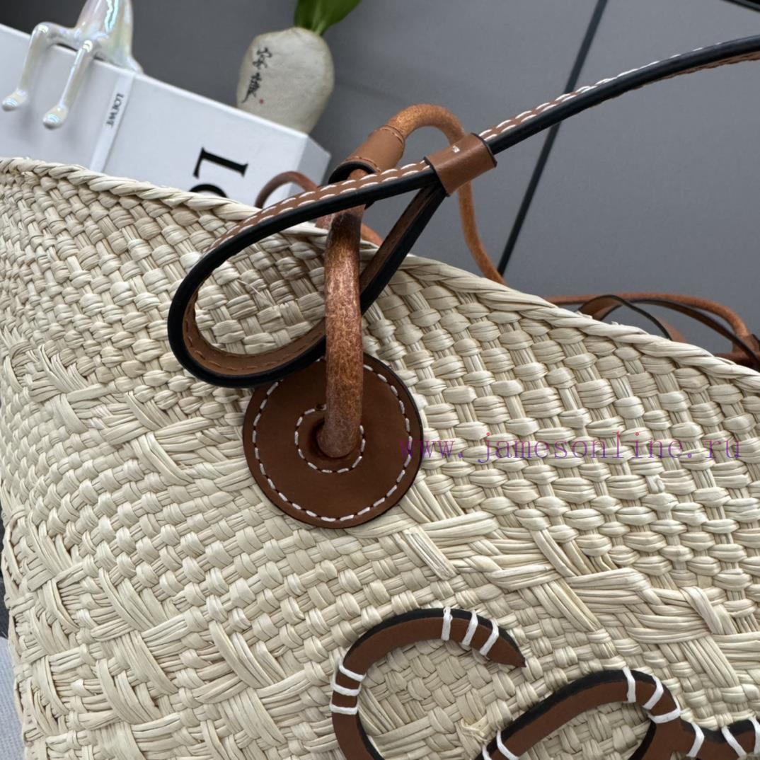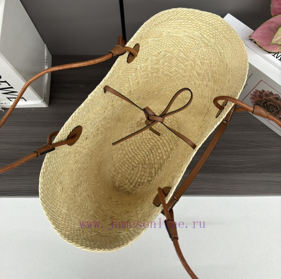 .LO℮w℮ 🧺 Iraka Palm Fiber and Cow Leather Anagram Basket Handbag * A traditional basket handbag * with a classic hand woven body, tubular cow leather strap, and top handle *, as well as a cow leather Anagram embossed patch. This bag is made of Iraka palm, a palm tree grown and harvested in Colombia, dried, and then woven by female craftsmen from the Corporaci ó n Oficio y Arte organization guided by fair trade principles into shoulder backs or top handles * cow leather strap opening and closing * customizable with personalized hanging accessories and straps * unlined * Due to handmade production, the size may vary slightly, making each purchase unique 🧺Model 062138 LargeSize46*27*30