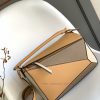 Loe * we popular Puzzle Bag medium size 29CM shipped geometric bag medium size made of cowhide inlaid with workers [rose] set crossbody shoulder or top handle carrying detachable strap, adjustable shoulder strap zipper closure leather zipper head, external rear zipper bag internal insert bag can be customized with shoulder strap and personalized hanging decoration herringbone pattern cotton canvas lining favored by many celebrities, everyone wants to have the bag size 29 * 19.5 * 4cm model 061827