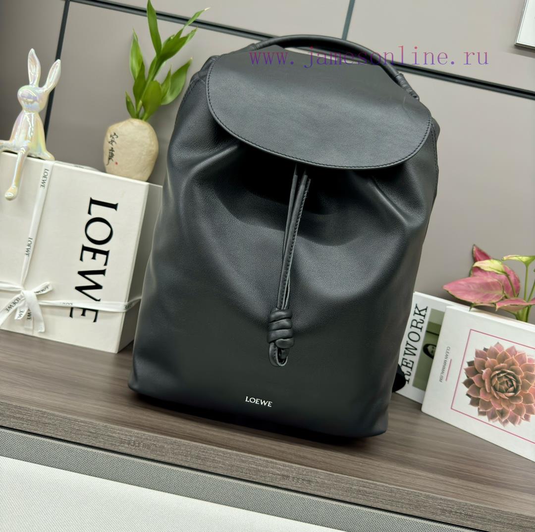 Loewe’s new shiny soft cowhide Flamenco backpack features a streamlined and practical daily design, paying tribute to the iconic coiled knot details of the original handbag. It has a large main compartment and external and internal pockets, which can store laptops and various daily carry on items. This backpack is made of shiny soft cowhide * shoulder back or handheld * adjustable leather and lo * ewe webbing shoulder strap * drawstring closure * external zipper pocket * internal insert pocket * herringbone cotton canvas liningModel 062415Size36*16*40CM