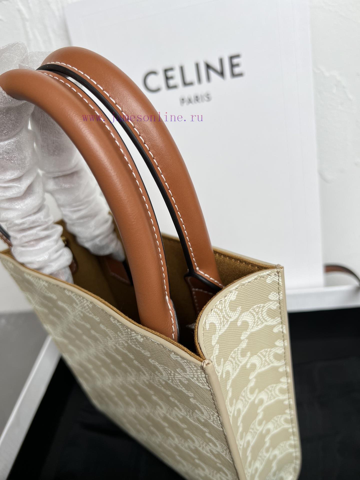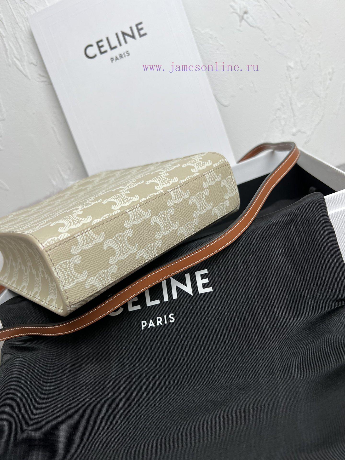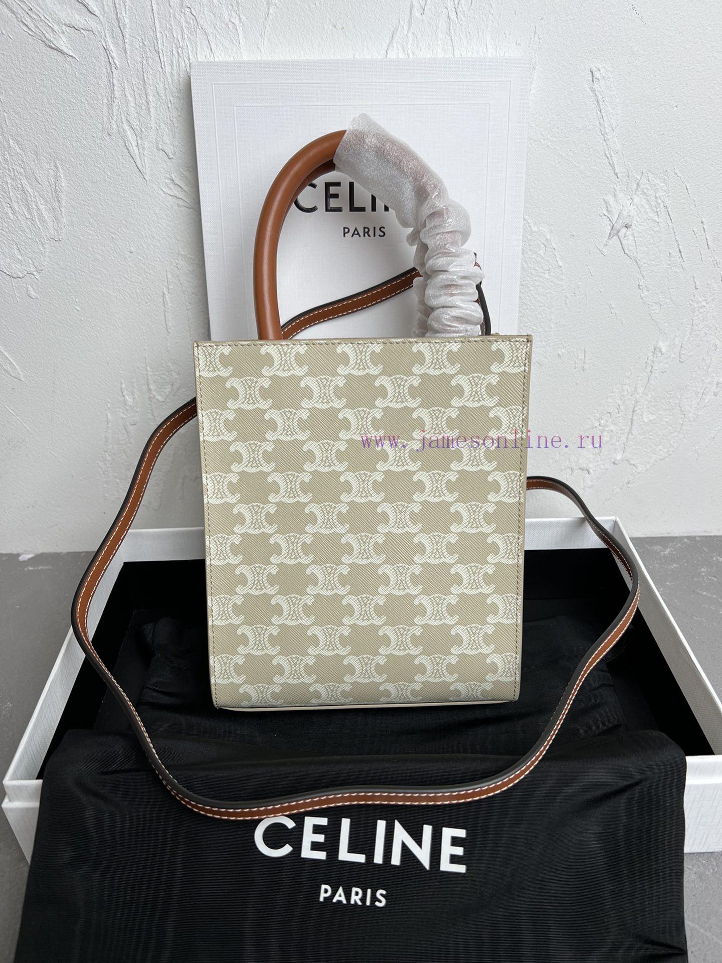 New Color CELIN-E CABAS Mini Logo Printed Cow Leather Vertical HandbagNew logo printing series worldwideRestarting the iconic emblem first used by the brand in 1972Set off the TRIOMPHE logo on a beige base to decorate colorful holiday outfitsThe mini tote has a compact and lightweight body, making it versatile and retro. It looks great when carried and crossbodyLogo print, cowhide edging, fabric lining, can be carried over shoulder and crossbody, leather handle length of 10 cm, paired with detachable and adjustable shoulder straps, minimum length of 49 cm, maximum length of 50 cmSize 17 X 20.5 X 4 centimetersModel 191542 Mini