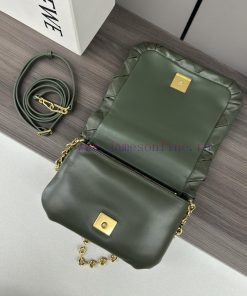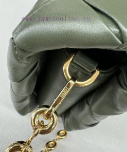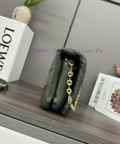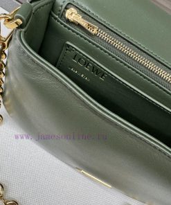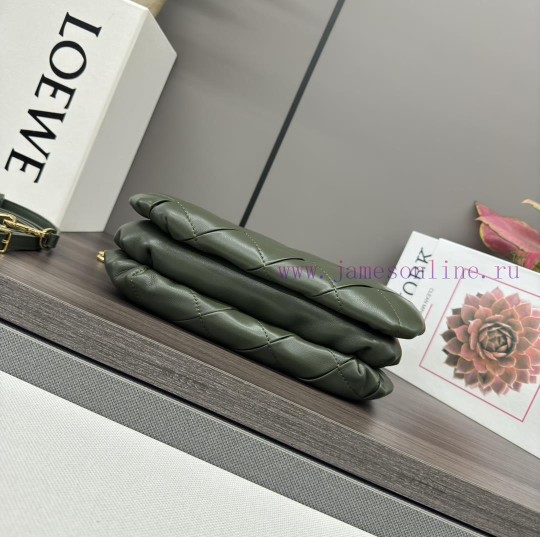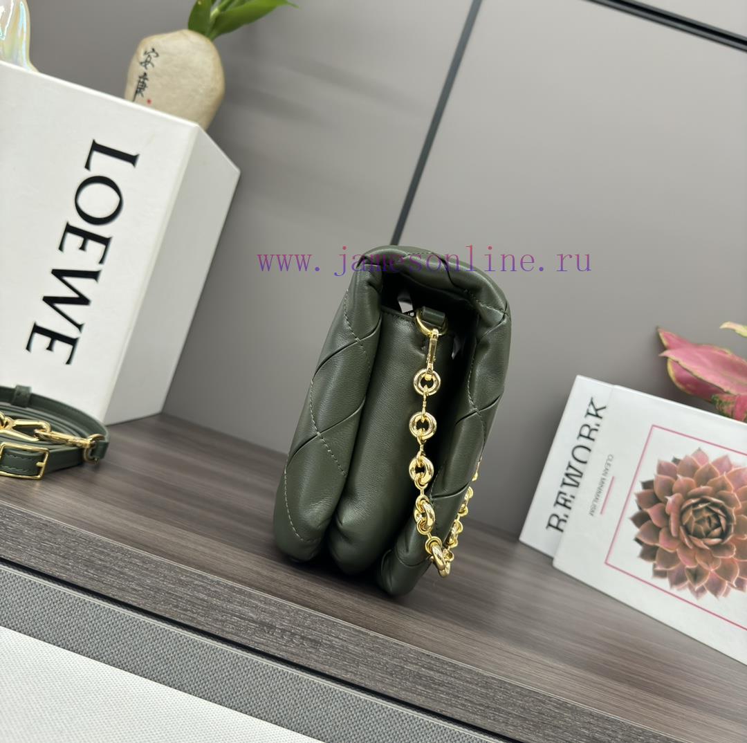 The. LO ℮ w ℮ pleated shiny Nappa goat leather Puffer Goya handbag is inspired by Goya aesthetics, bringing a new sensory and tactile dimension through shiny Nappa goat leather with goose feather padding. It is equipped with a detachable and adjustable metal donut chain and a detachable leather strap. This handbag is made of pleated goat leather, cut, sewn, and hand woven into shoulder or hand-held * magnetic buckle *. It comes with a detachable chain and a leather strap, a main compartment, a zippered pocket, and an insert bag * Nappa goat leather liningModel 062466Size23*9*17cm