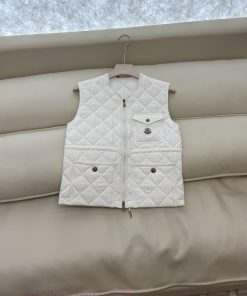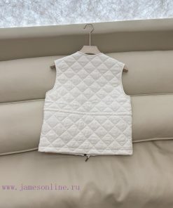 M413 new cotton jacket Moncler Top Edition 100% Linen Cotton Diamond Grid Clamp Cotton Vest Cotton Coat Camel White 1/2/3 Size