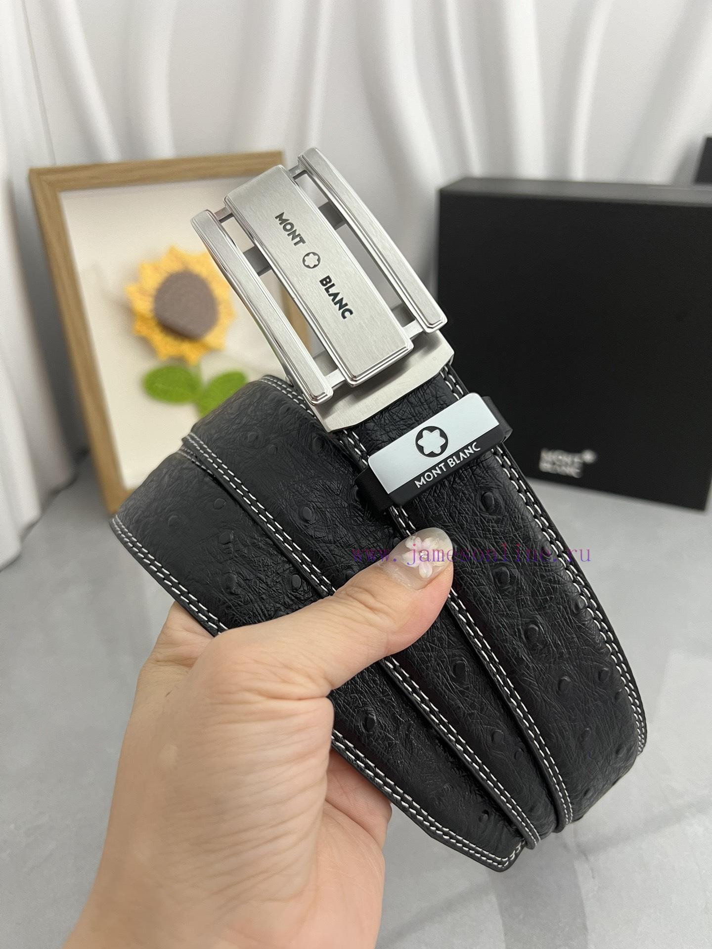 Montblanc Automatic BeltMaterial: Leather Belt with 100% Head Layer. The leather belt is guaranteed to be genuine leather, with 24K pure steel buckle and exquisite workmanship. It is a fashionable brand and the first choice for gifting and personal useGift Box with Puncher Handbag Width 3.5CM