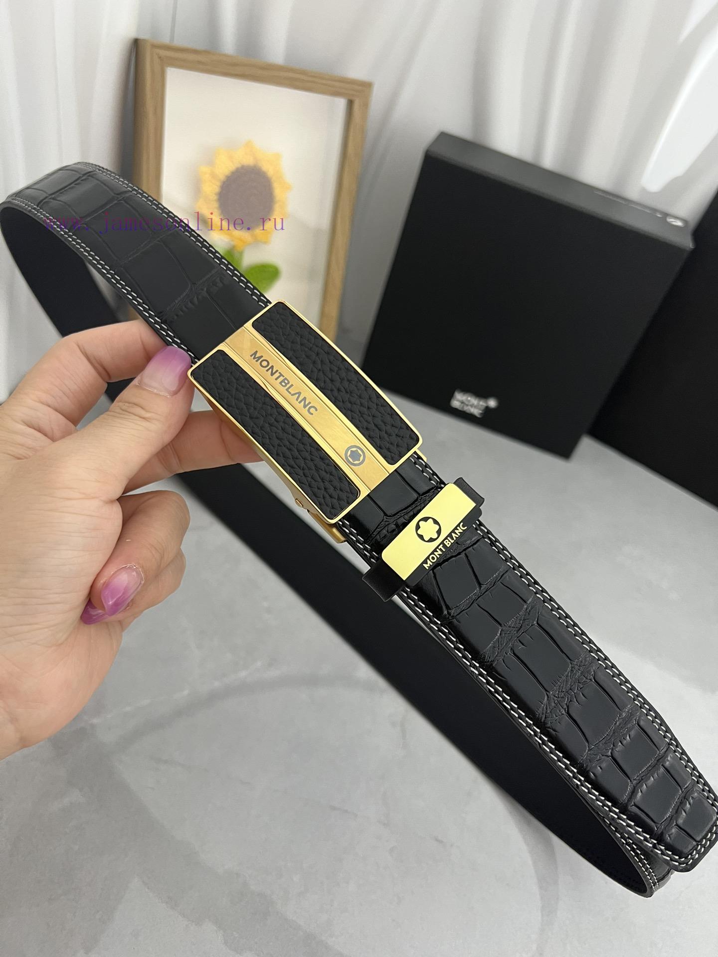 Montblanc Automatic BeltMaterial: Leather Belt with 100% Head Layer. The leather belt is guaranteed to be genuine leather, with 24K pure steel buckle and exquisite workmanship. It is a fashionable brand and the first choice for gifting and personal useGift Box with Puncher Handbag Width 3.5CM