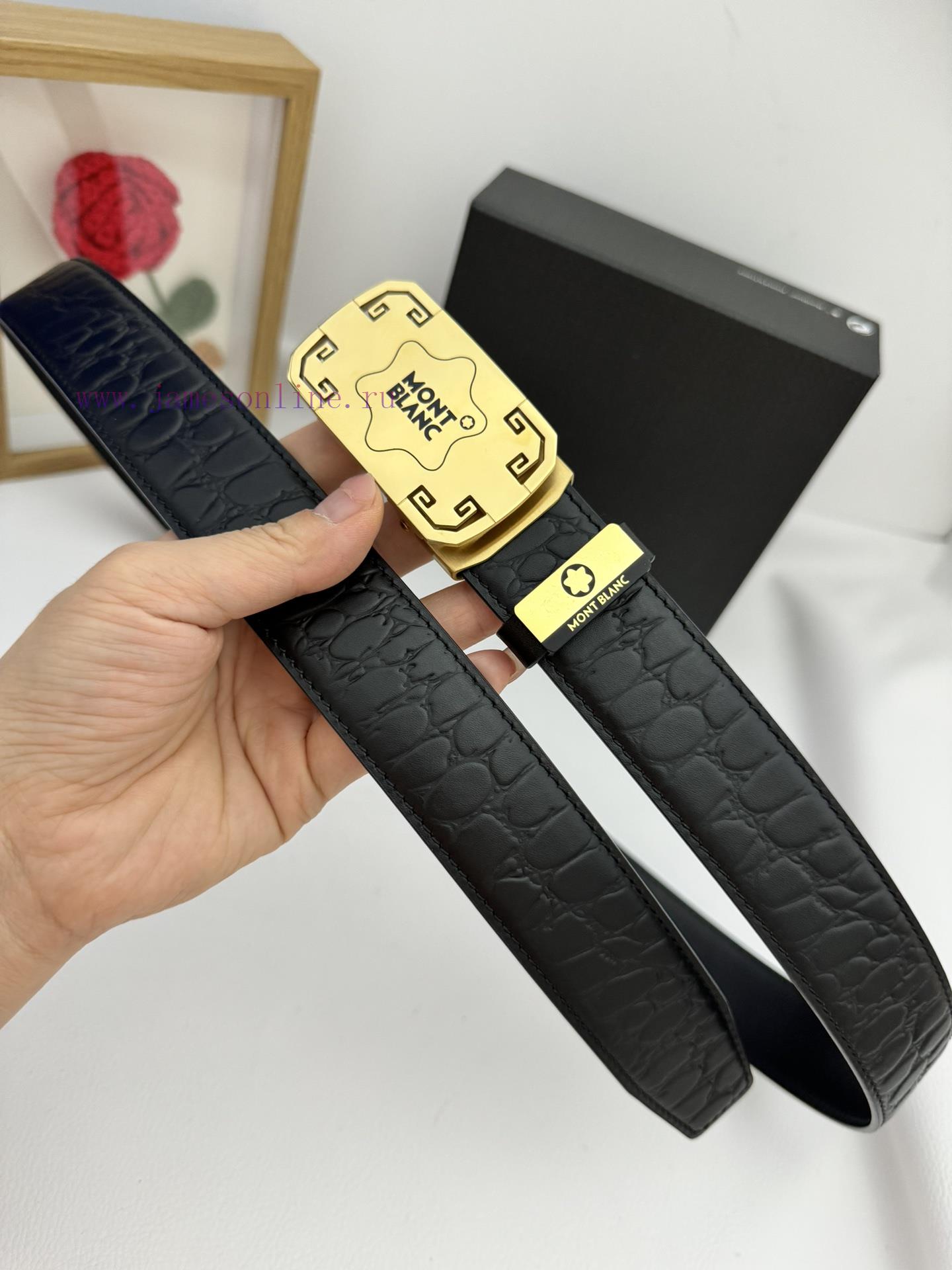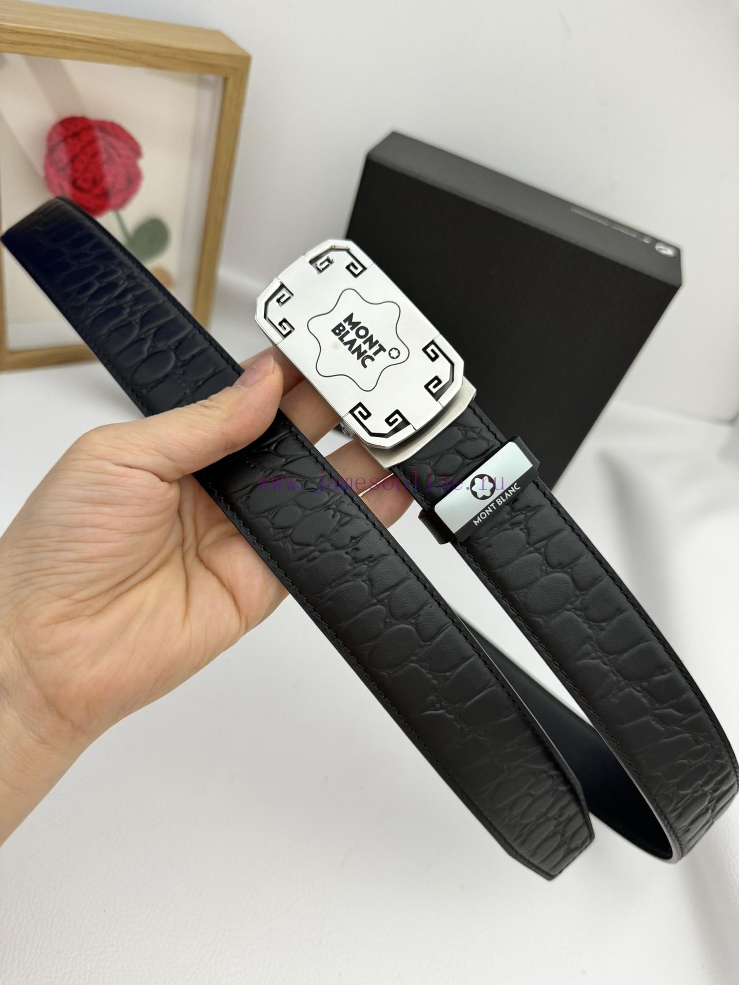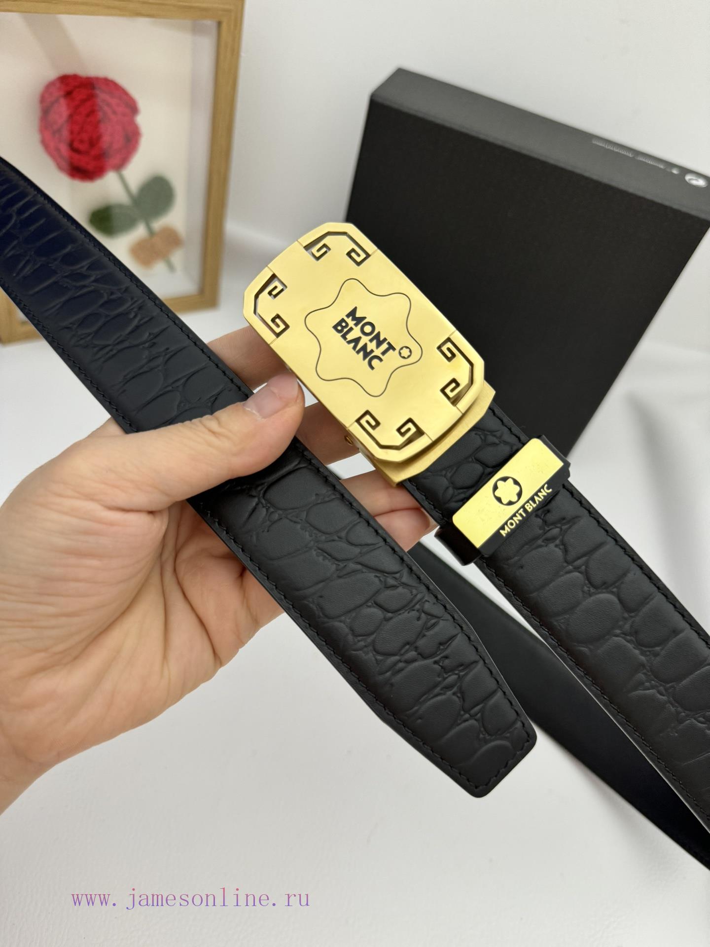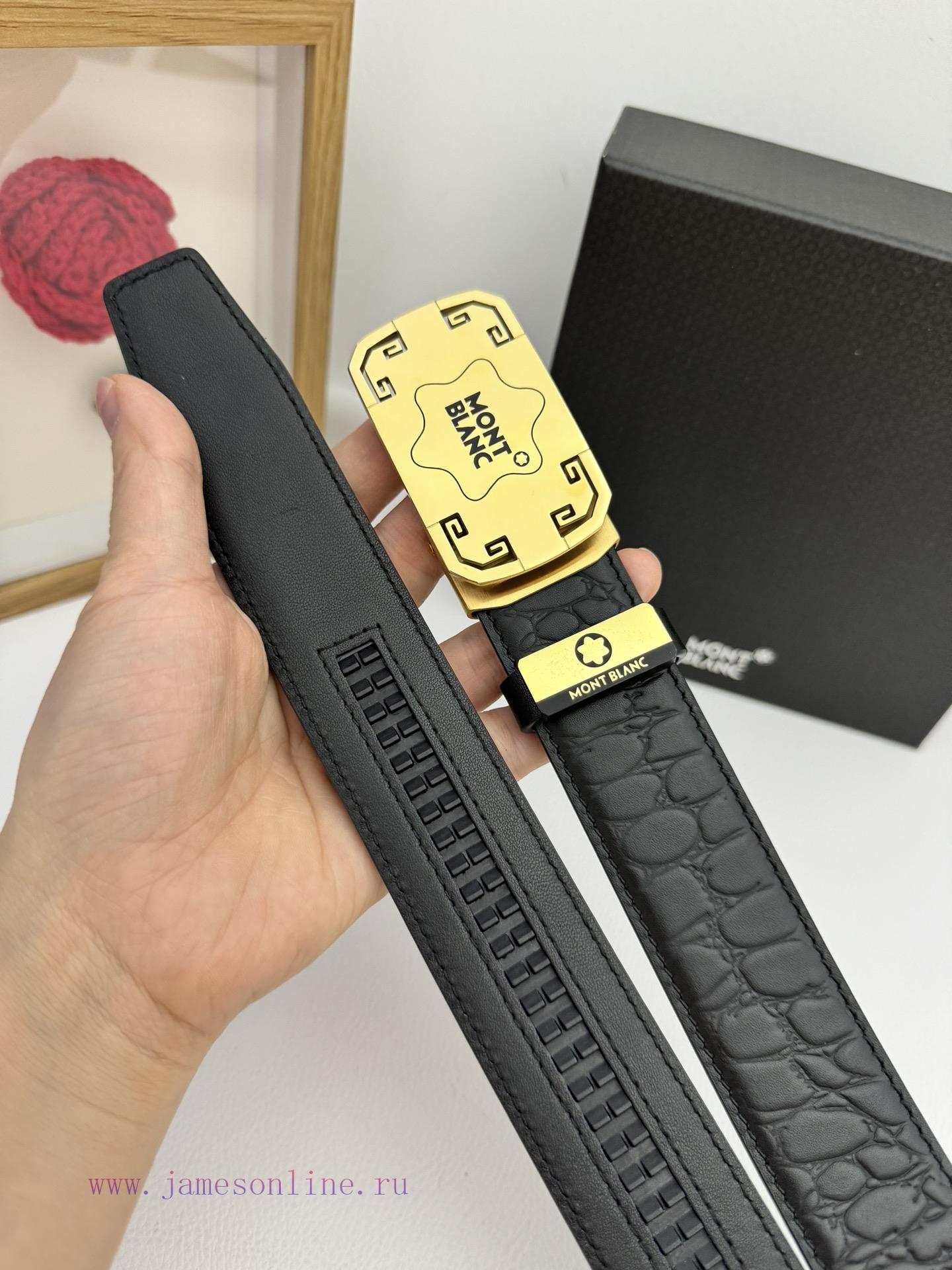 Montblanc Automatic BeltMaterial: Leather Belt with 100% Head Layer. The leather belt is guaranteed to be genuine leather, with 24K pure steel buckle and exquisite workmanship. It is a fashionable brand and the first choice for gifting and personal useGift Box with Puncher Handbag Width 3.5CM