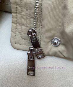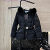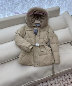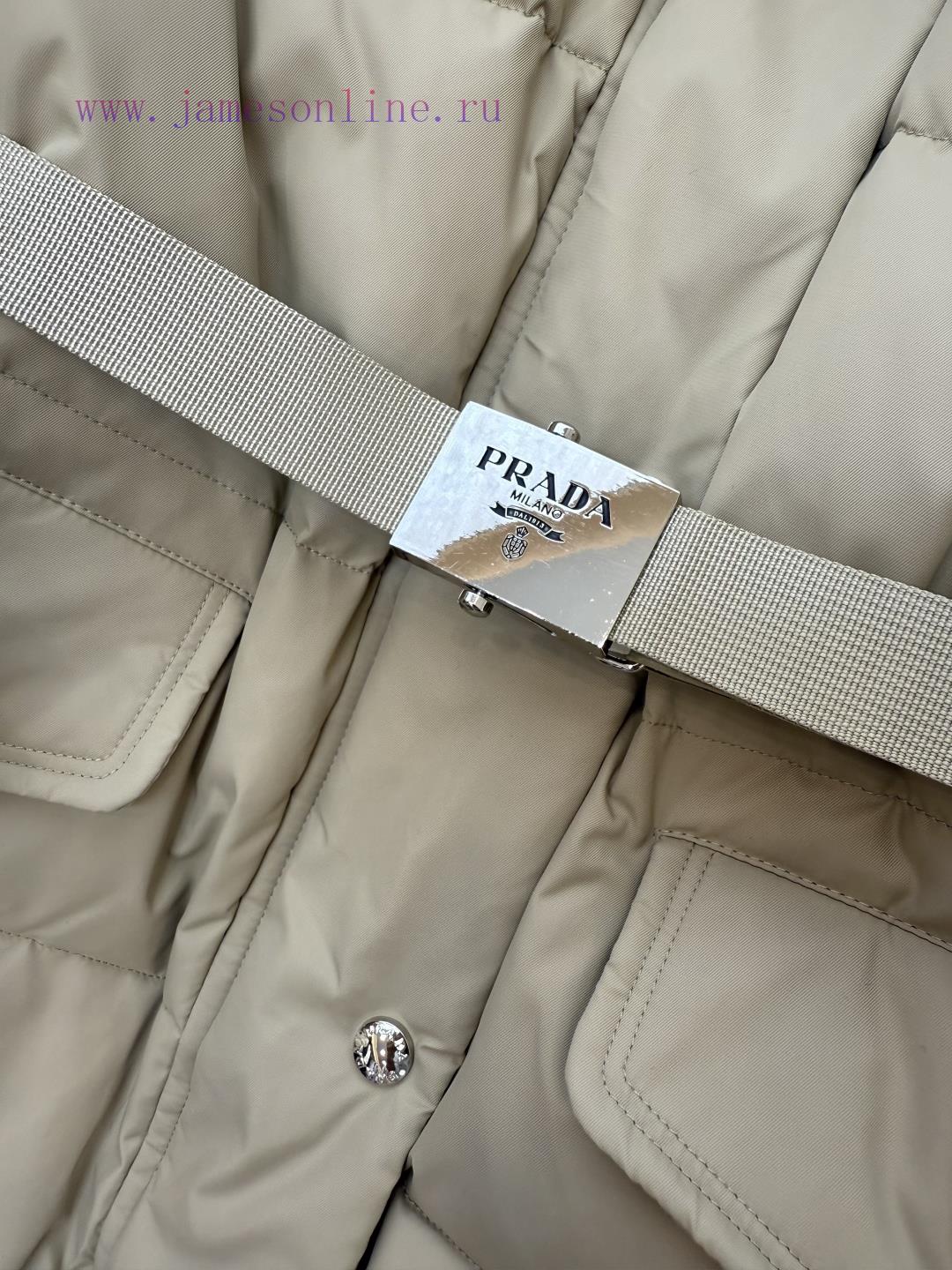 P-8516 new down jacket Prada triangle logo oversized fox fur collar with belt 90% white goose down short down jacket white khaki black 38-44Do not wear collars -100