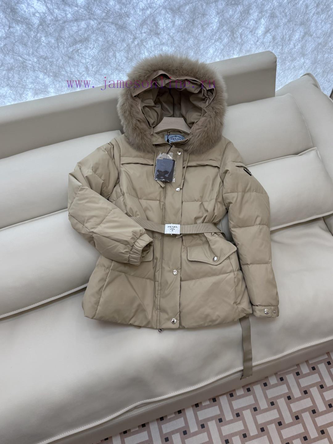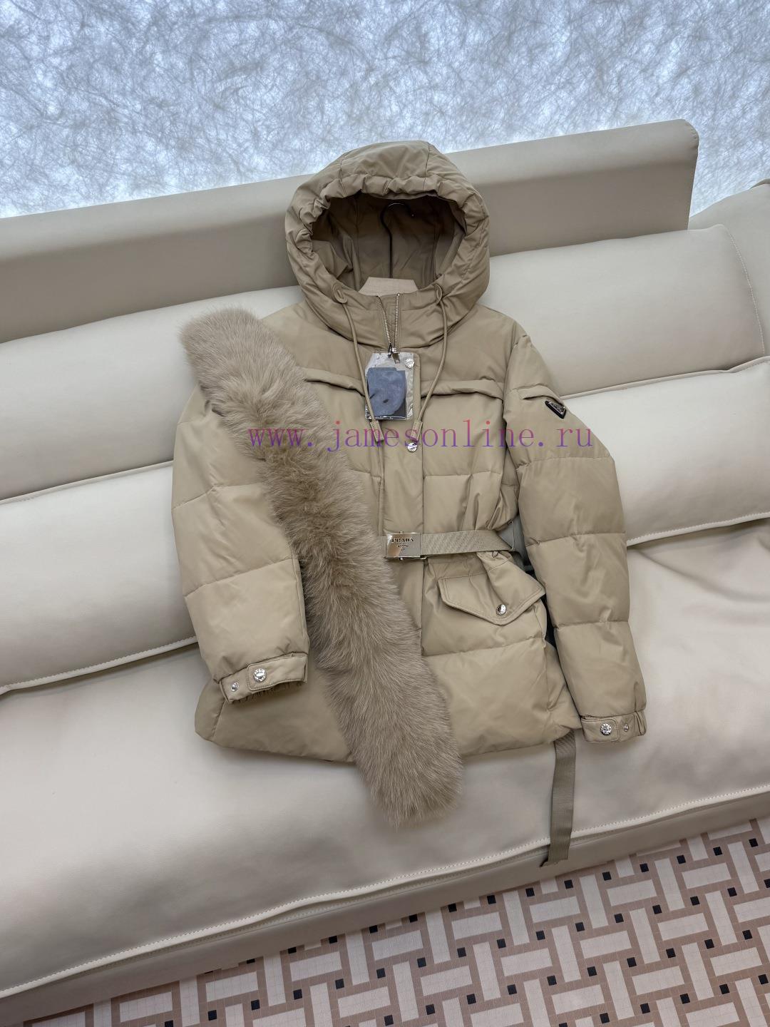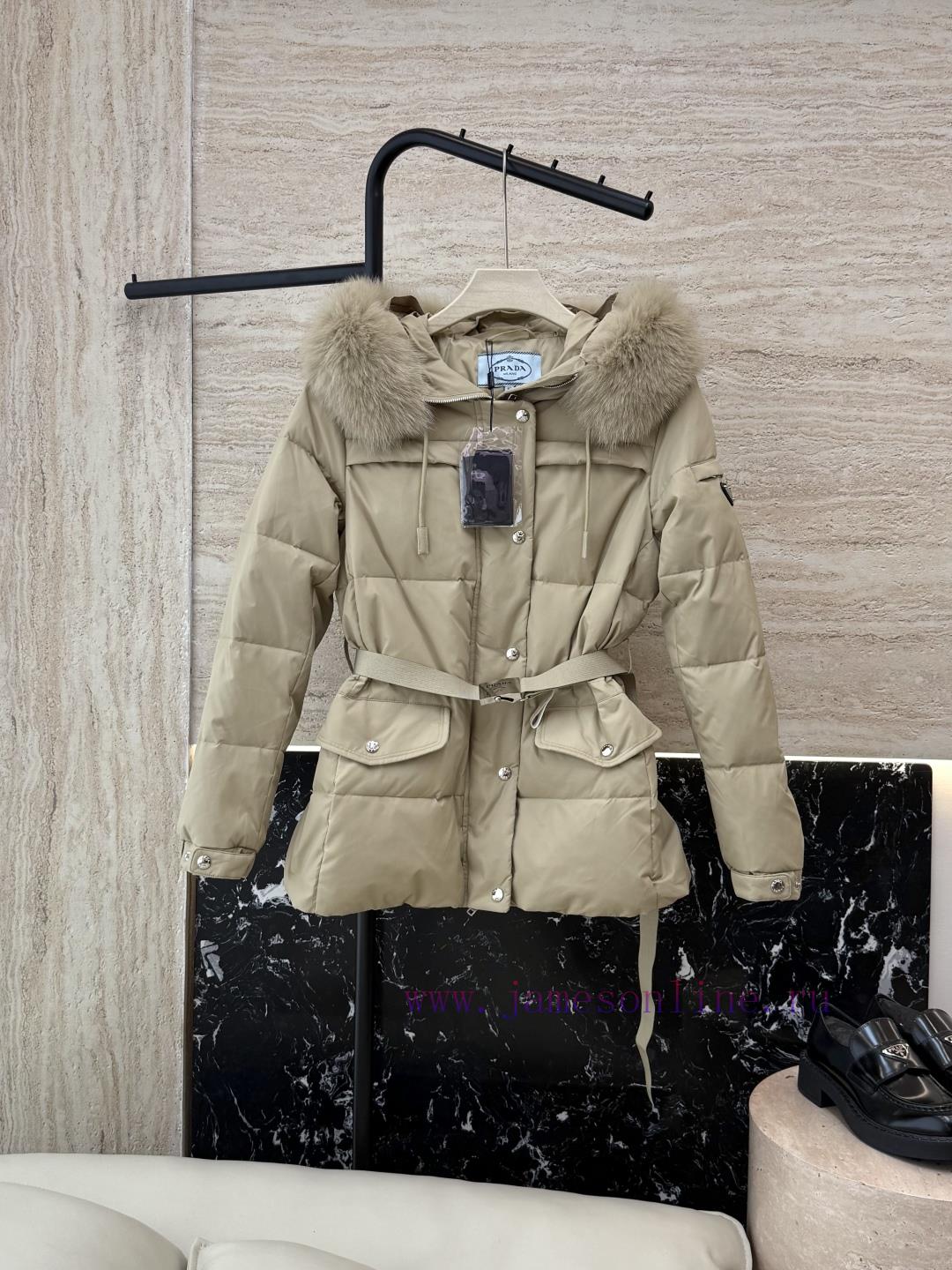 COD-Cash On Delivery Available=Αντικαταβολή Διαθέσιμη=Utánvéttel rendelhetőP-8516 new down jacket Prada triangle logo oversized fox fur collar with belt 90% white goose down short down jacket white khaki black 38-44Do not wear collars -100
