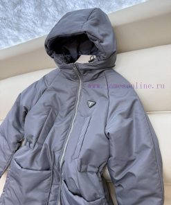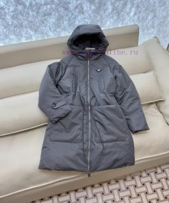 P-8519 new down jacket Prada Triangle Logo Hat Long Sleeve 90% White Goose Down Jacket Grey Apricot Black 38-44