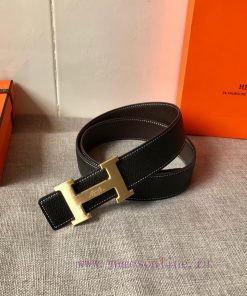 P Hermes Men’s BoutiquePure steel dual color original belt buckle&lychee pattern double-sided top layer cowhide belt, double-sided white color stitching design, highlighting unique styleWidth 38 millimeters