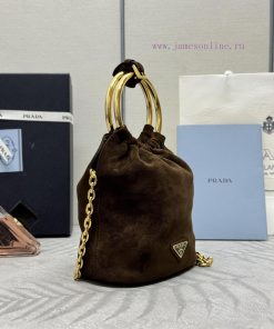 , (Paired version full package, customized), new bucket bag 1BC227 suede brownThis mini buckubw6u186