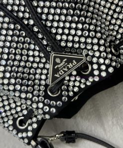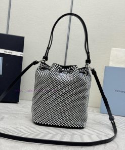 , (Paired version full set packaging, customized), Crystal Bucket Bag 1BE067 White DiamondThis crystal water bucket is made of imported imitation crystal and satin materials, decorated with enamel metal triangle logo and opening and closing design. The short shoulder strap is adjustable in length, and the long shoulder strap is detachable and adjustable. It’s so cute, and the blinding effect is very eye-catching. It’s easy, spacious, and cool. Don’t you be tempted? Hurry up and buy it, beautiful girls. It’s so beautiful, love itLength 16x Height 21 Bottom 10cm