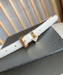 PRADA’s elegant Saffiano belt showcases a feminine design with a soft and heartfelt triangular metal emblem decoration that exudes an aura, measuring 1.5cm in width