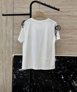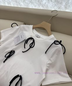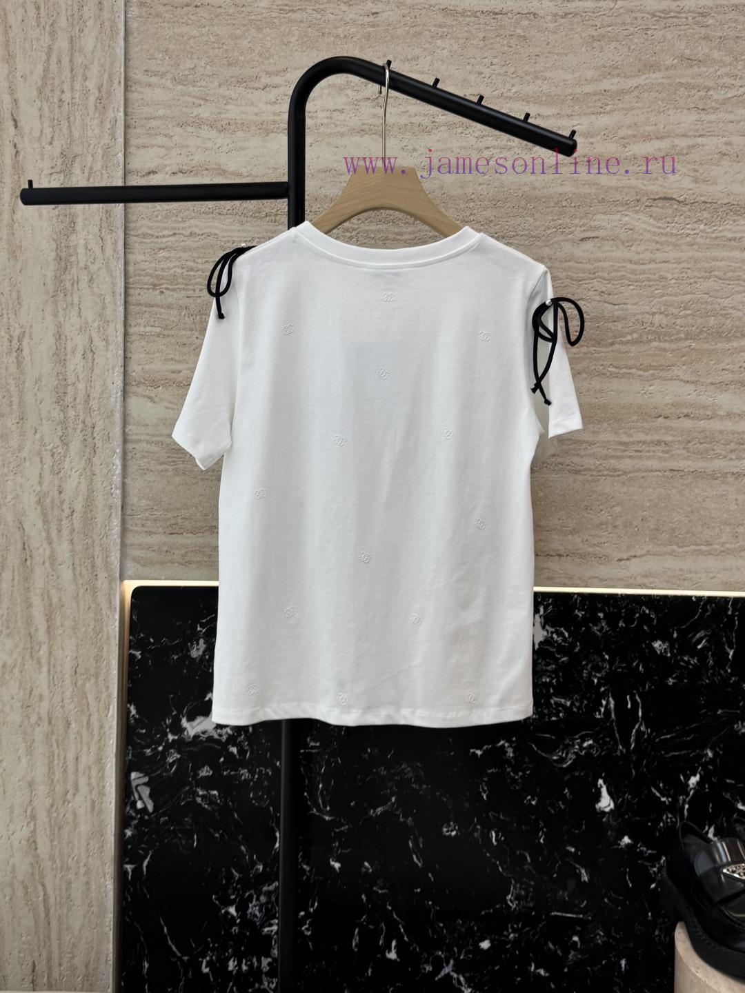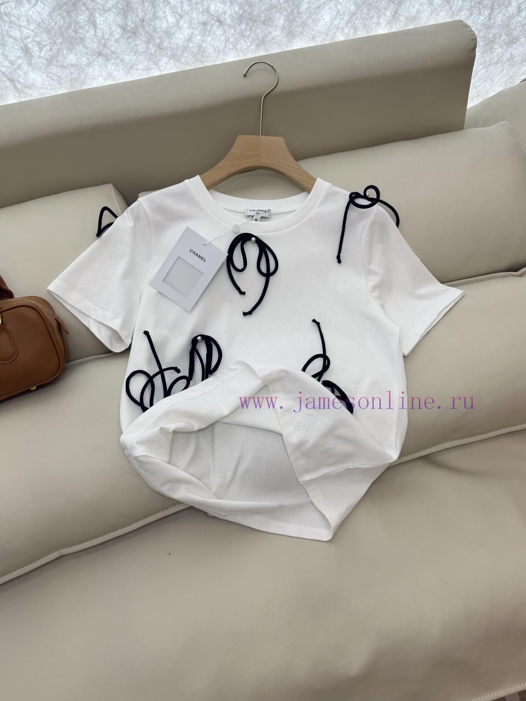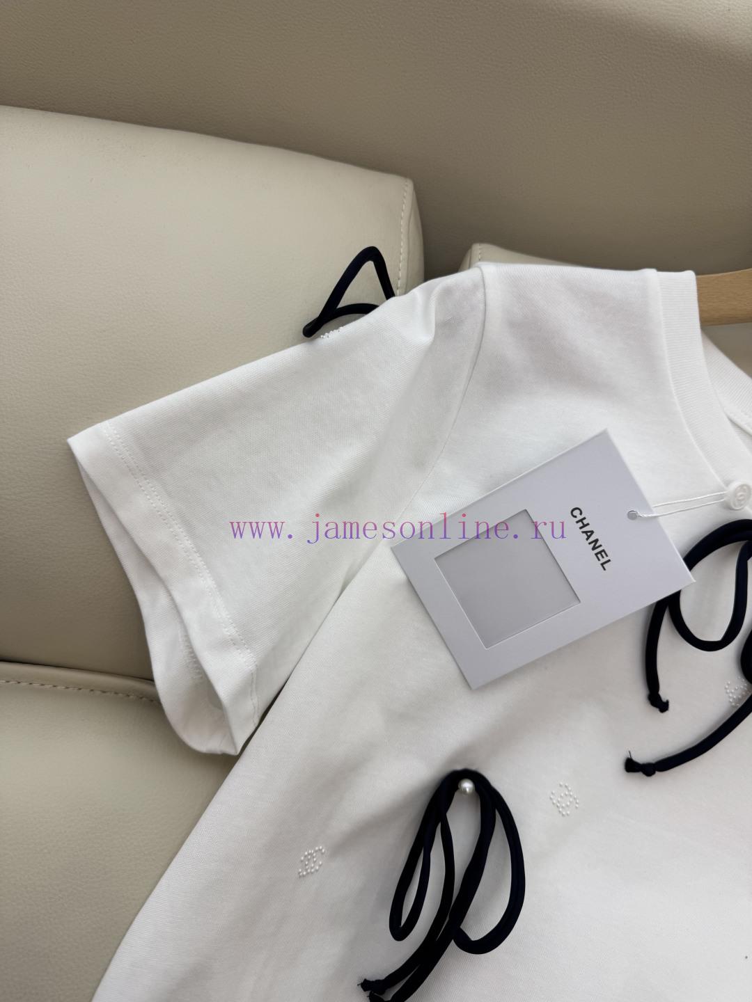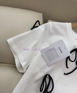 QG065 New T-shirt CHChanel Handmade Nail Bow Short Sleeve T-shirt Black Grey SML