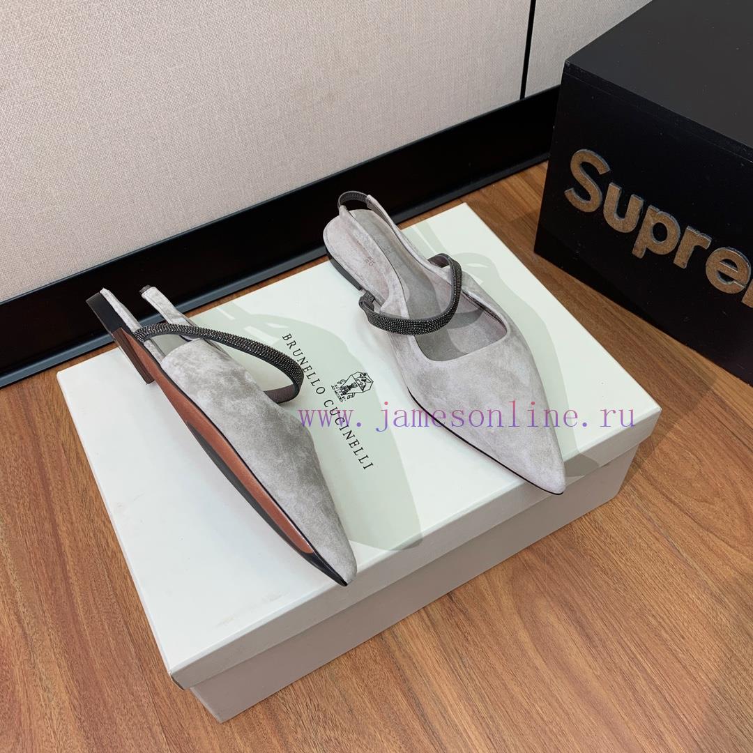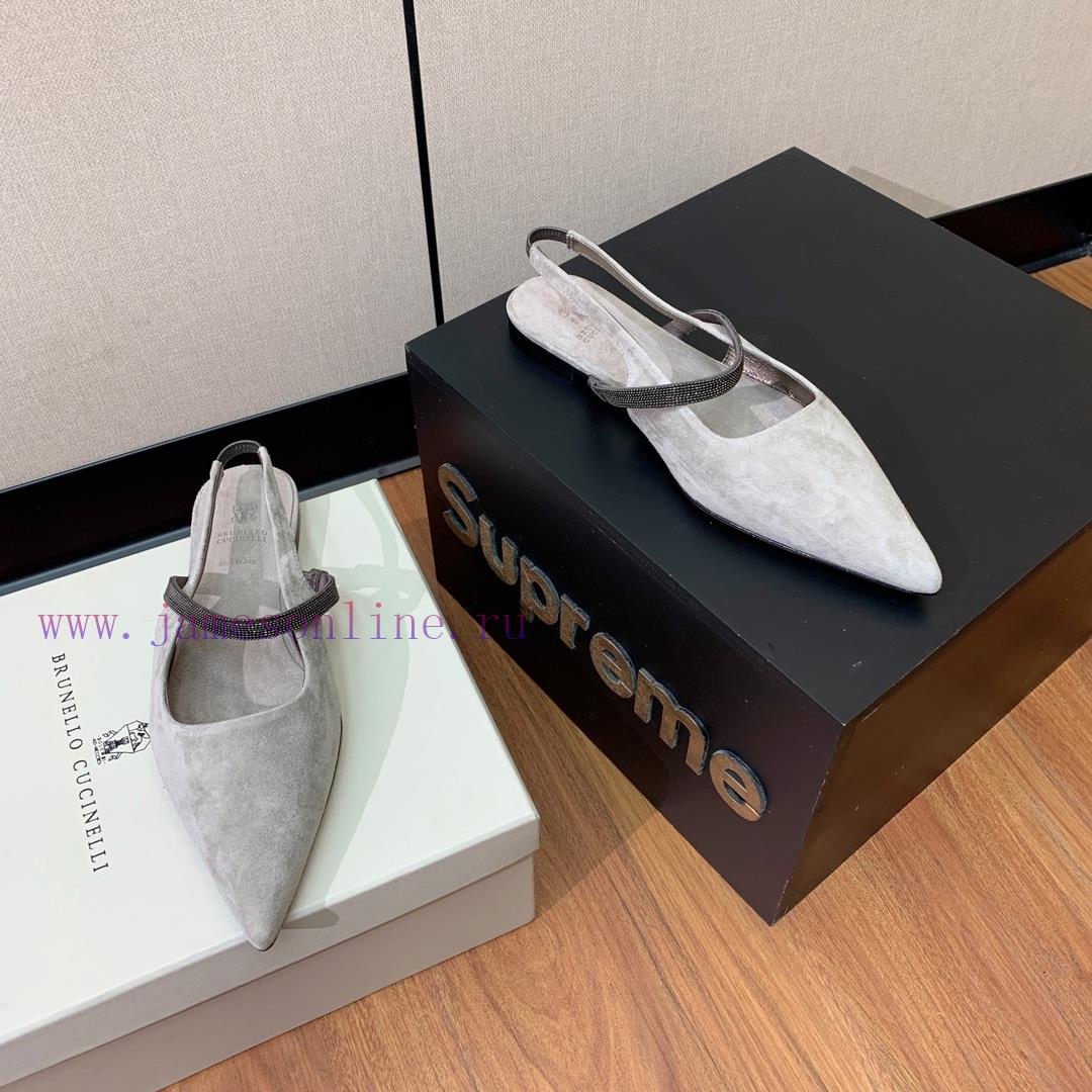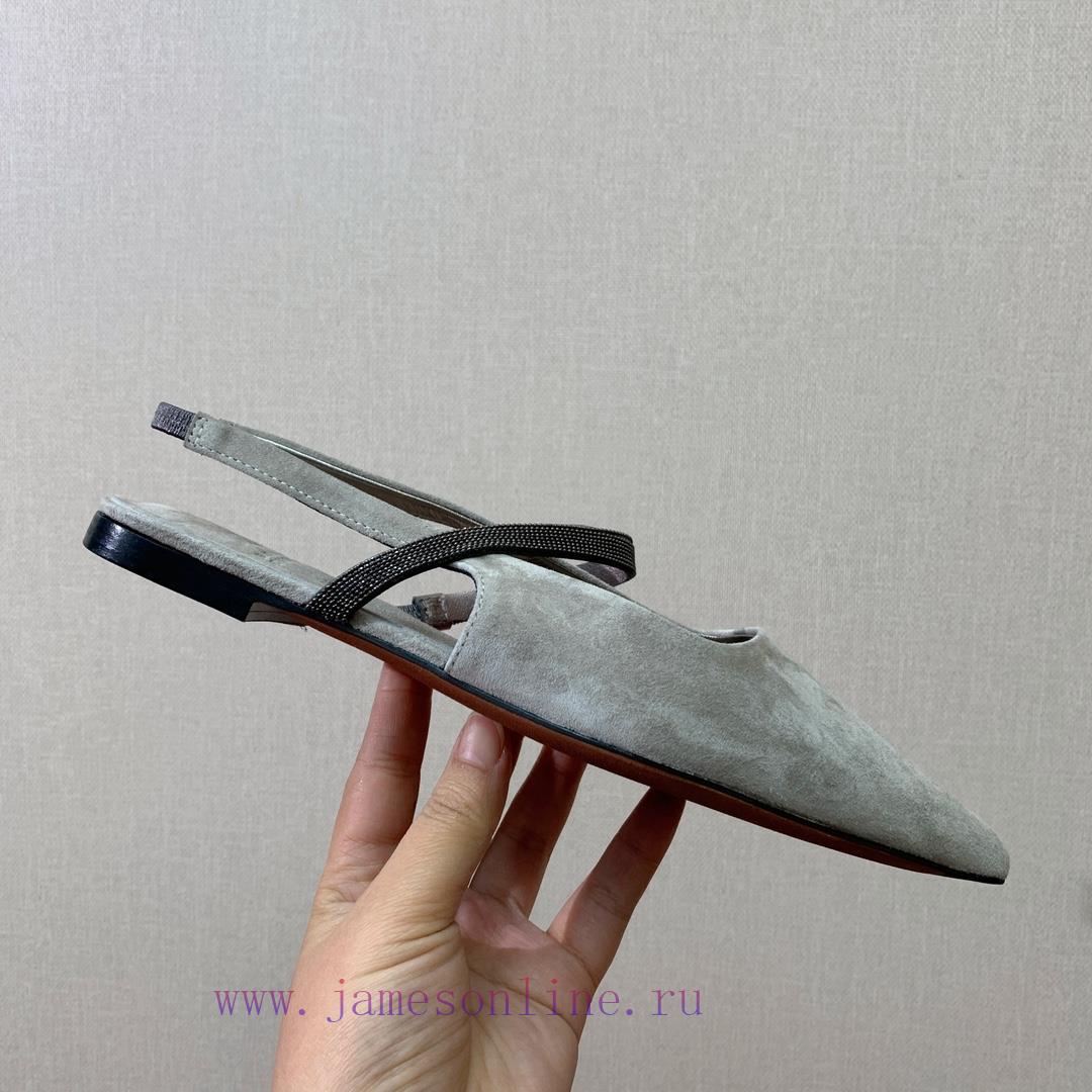 The classic inspiration of BRUNELL CUCINELL rear air flat sandals defines the modern and elegant style of this new high-heeled sandal. The upper is made of sheepskin and sheepskin, with an injection molded leather outsoleSizes 35-4240 4142 are custom-made and non refundable
