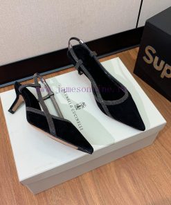 The classic inspiration of BRUNELL CUCINELL rear air sandals defines the modern and elegant style of this new high-heeled sandal. The upper is made of sheepskin leather and the lining is made of sheepskin. The injection molded leather outsole has a heel height of 5cmSizes 35-4240 4142 are custom-made and non refundable