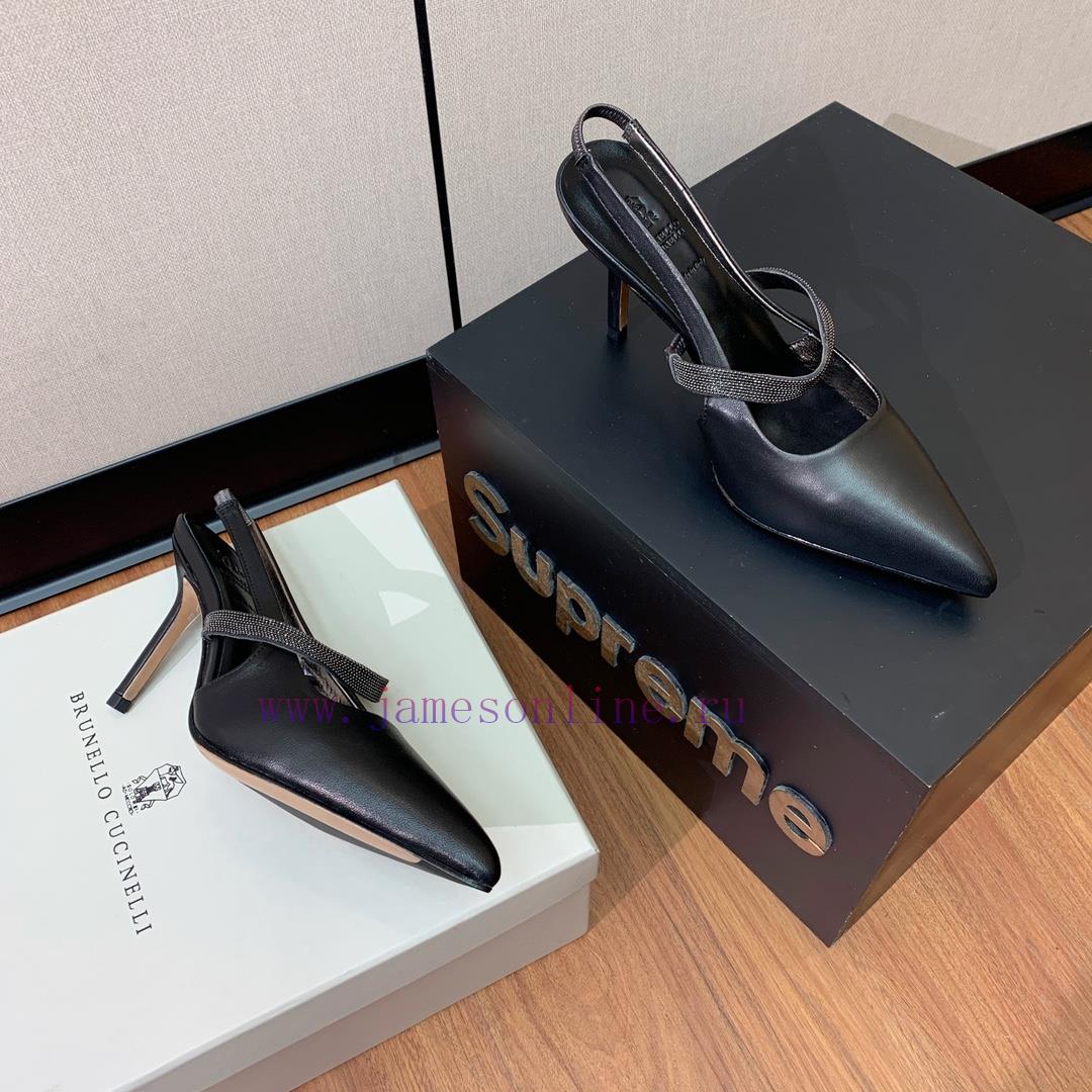 The classic inspiration of BRUNELL CUCINELL rear air sandals defines the modern and elegant style of this new high-heeled sandal. The upper is made of sheepskin leather and the lining is made of sheepskin. The injection molded leather outsole has a heel height of 9cmSizes 35-4240 4142 are custom-made and non refundable
