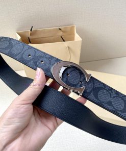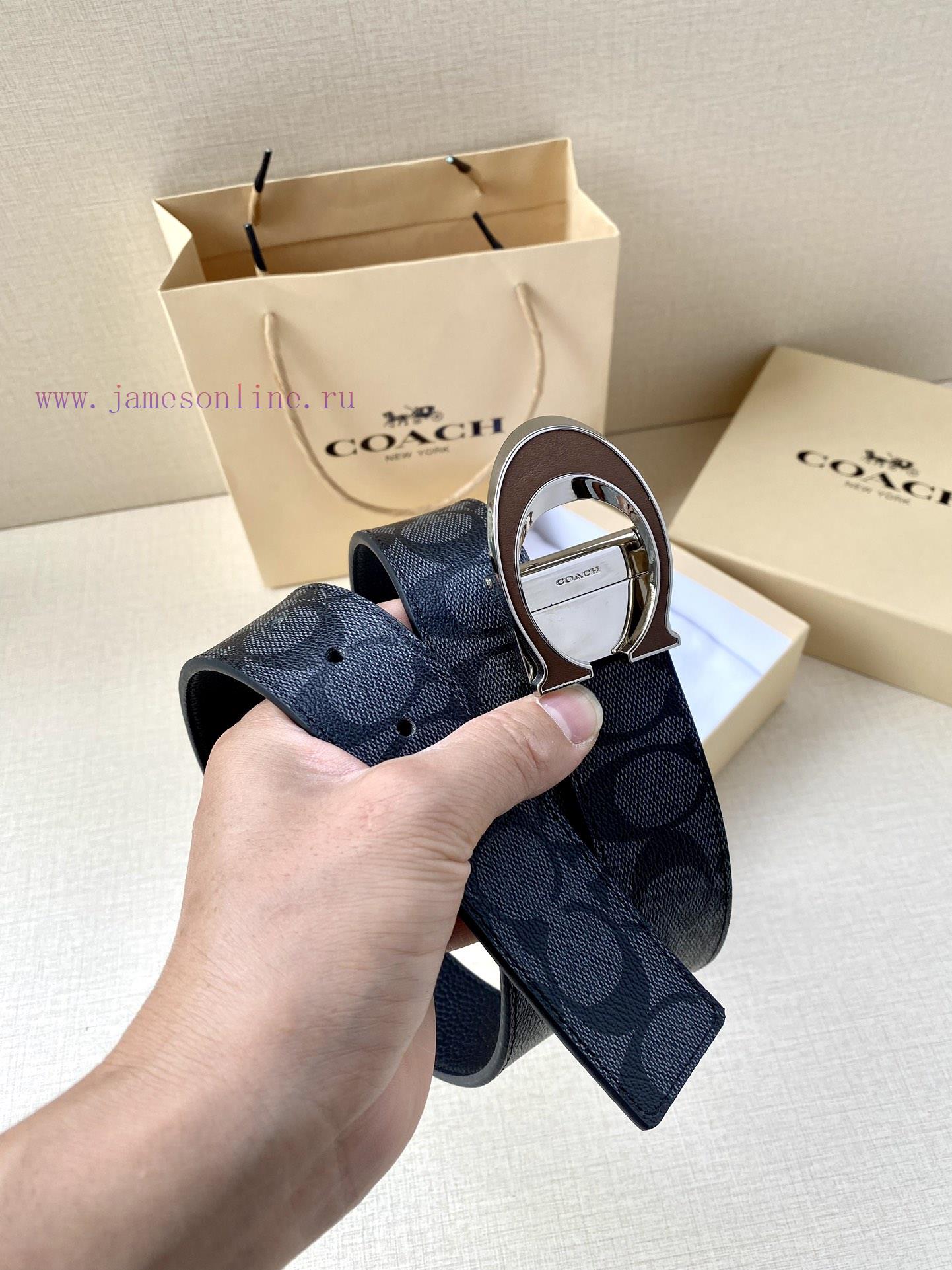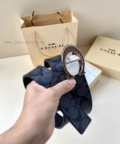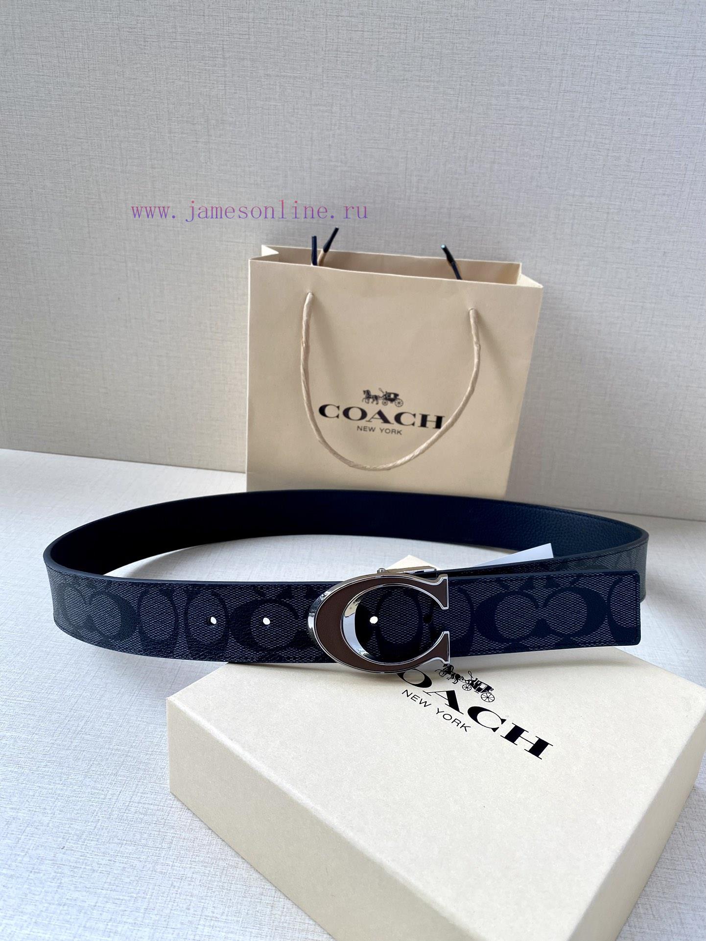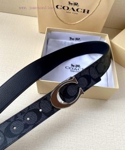 The COACH double-sided belt with a width of 3.8cm is made of classic logo canvas material on iv1ozagg