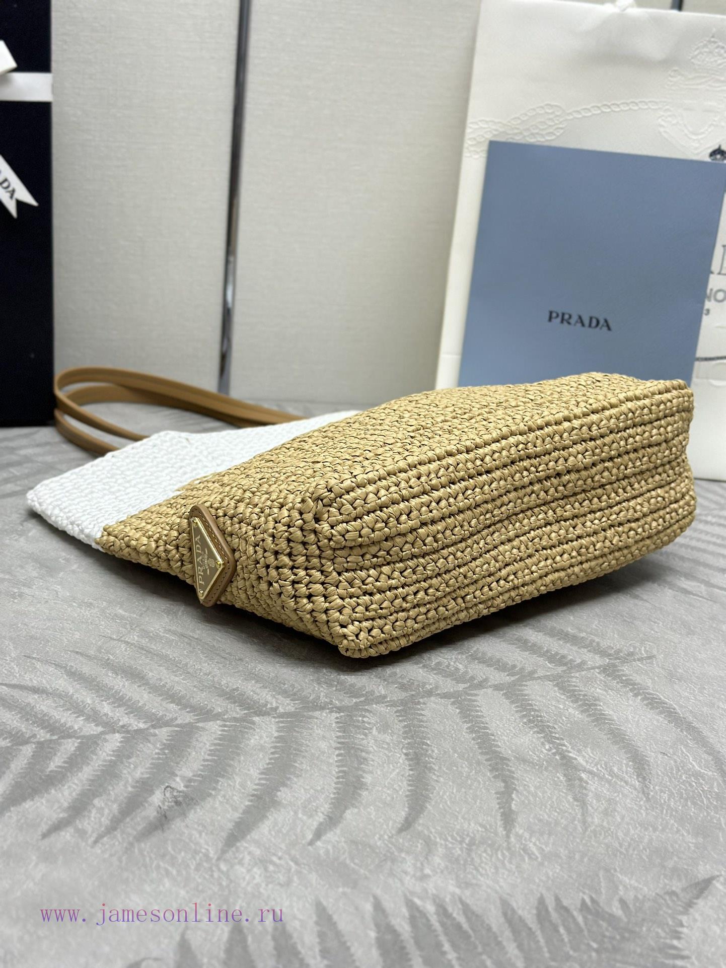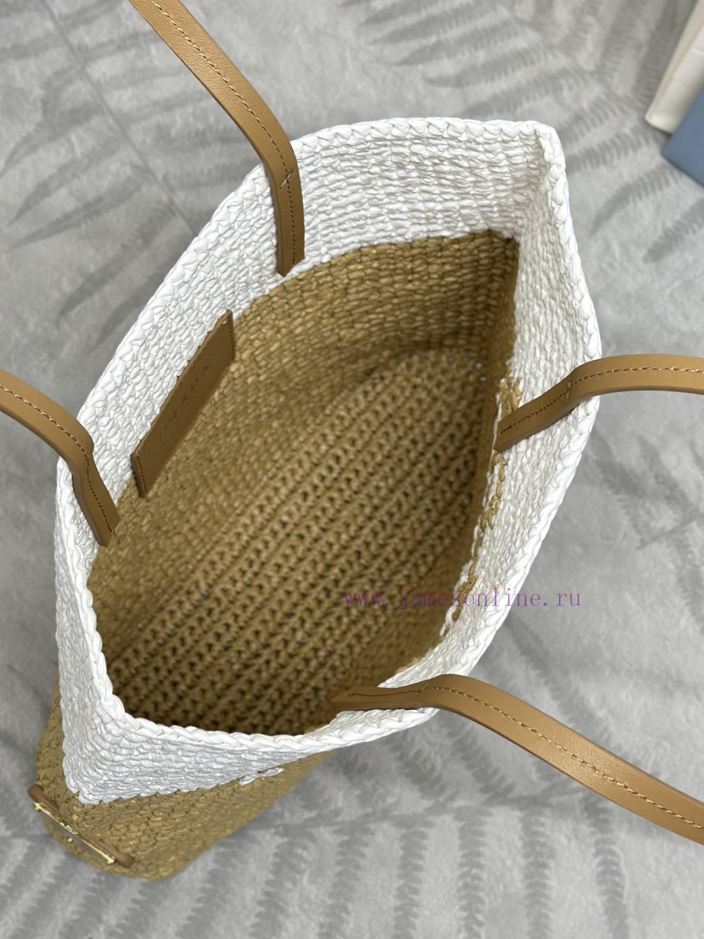 The new fiber tote bag 1BG454 small is designed with imported Lafite grass, which is very handmade. Each bag is professionally woven by hand with two colors spliced together. The color tone is light and spacious, with a great summer style. The clothing effect is very beautiful and perfect, so hurry up and get itSize 23cm in length, 22cm in height, and 8cm in bottom