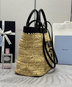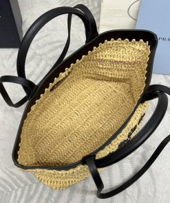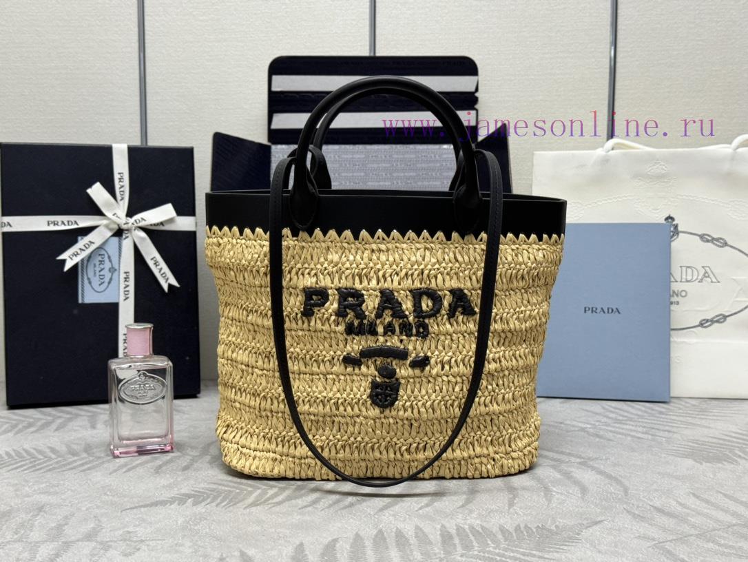 The new grass woven tote bag is 1bg500 medium size, woven fabric tote bag, and the material is very soft. This modern and exquisite mini tote bag combines crochet craftsmanship and leather details to create a summer atmosphere. The cowhide double handle can be used as a handbag or shoulder bag, and the front is decorated with contrasting embroidered letter logos, adding recognition. The exquisite woven bag body emits a strong spring and summer atmosphere. With a simple carrying, it can give unparalleled high-end texture, large space capacity, and is also a classic explosiveSize 26 × 25 × 14cm (this model is long and does not come with packaging)