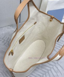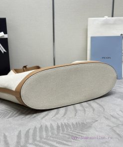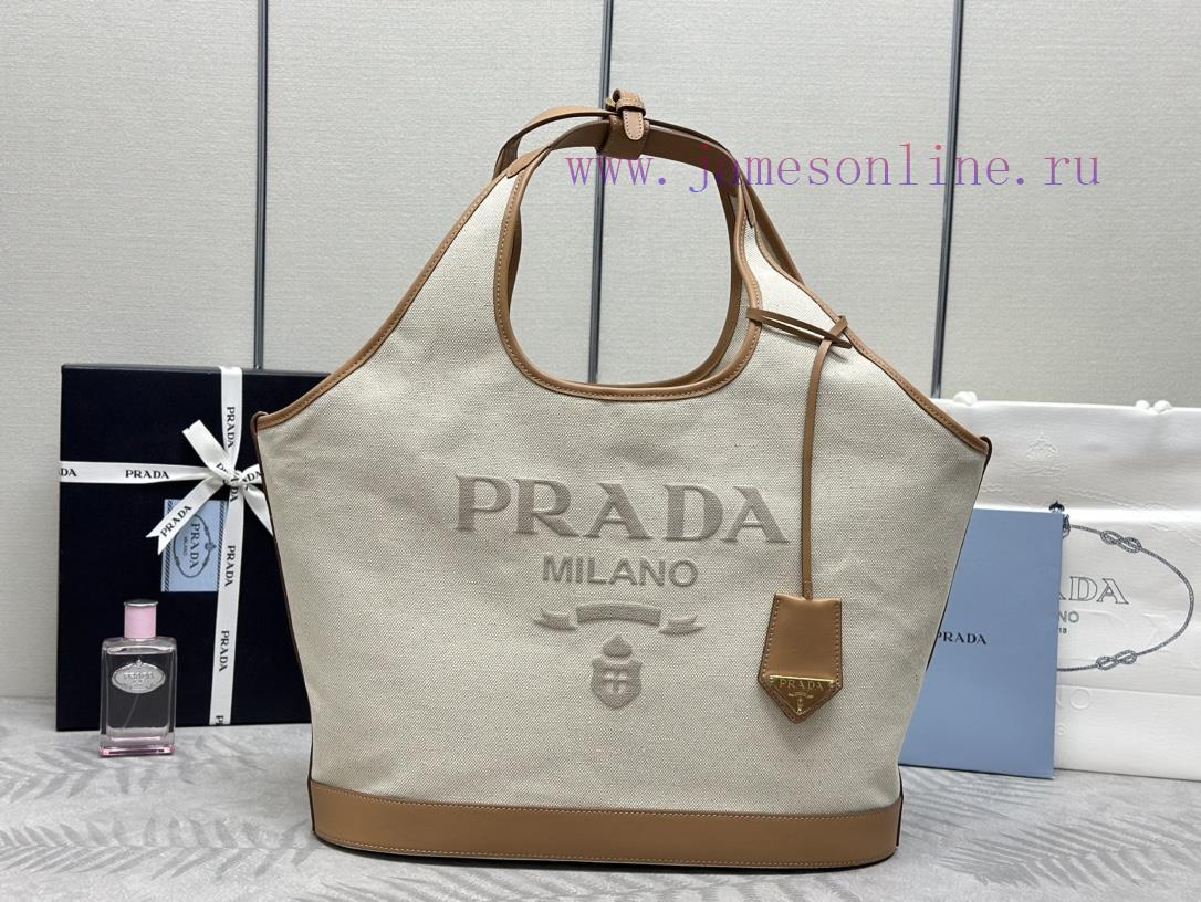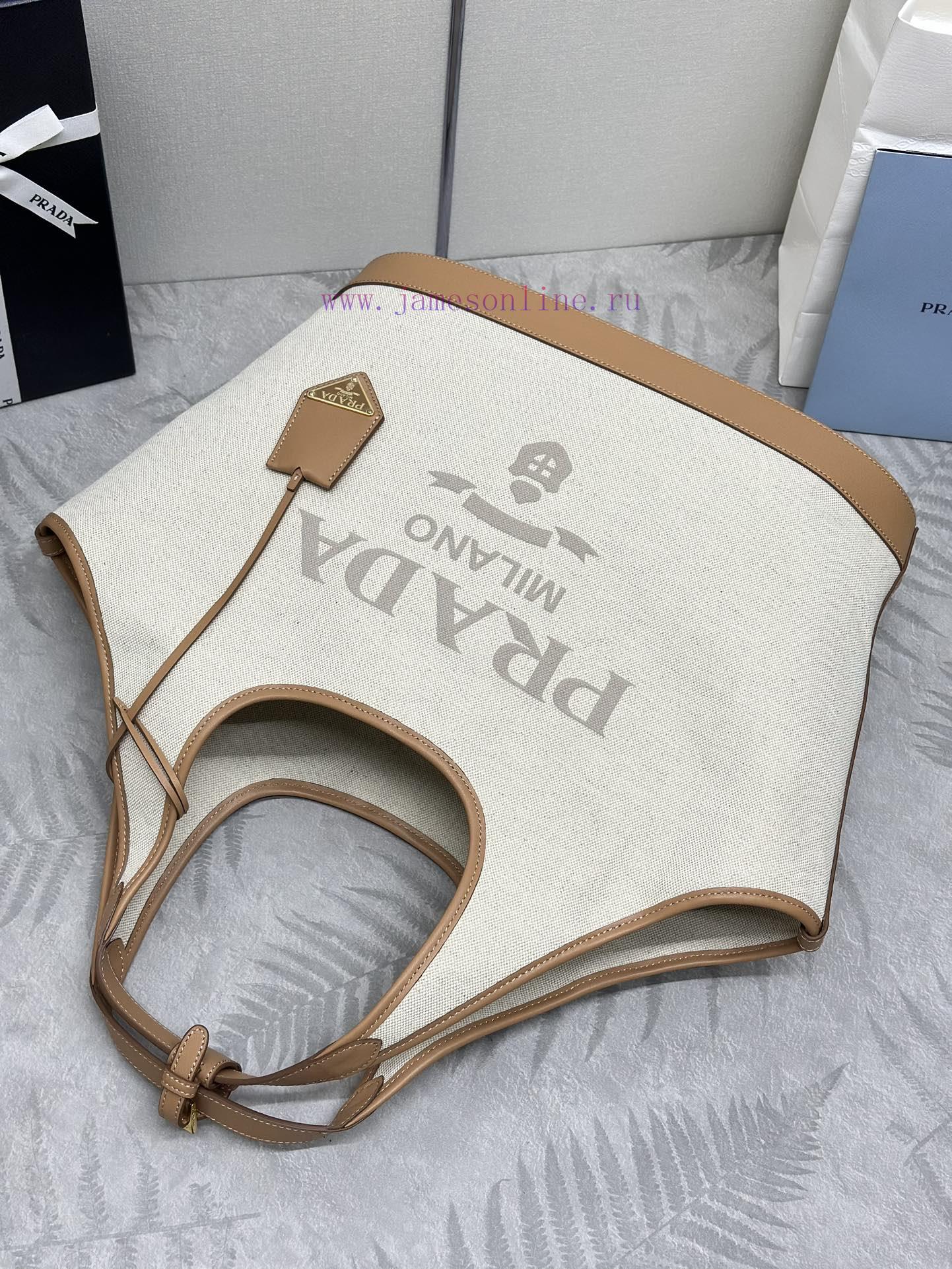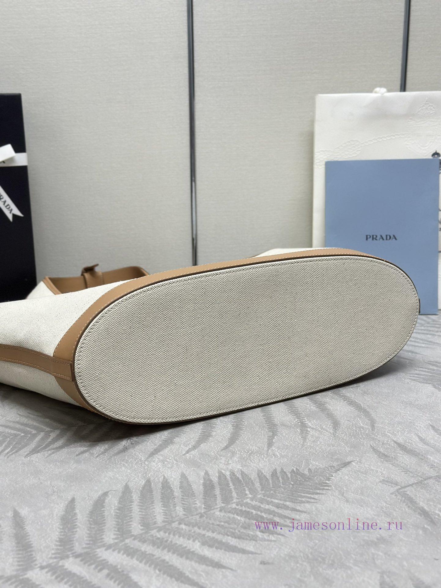 The new large tote bag, 1bg472, is made of linen blend fabric, showcasing a fashionable sense of volume and exquisite geometric shape, highlighting its structured design style. It is casual and versatile, with ample capacity, embellished with leather details, adding a touch of elegant charm. Exquisite details are embellished, such as a detachable keychain with enamel triangle metal logo and a relief letter logo on the front (this model is too large to be packaged)Height 30cm x Width 37.5cm x Length 13cm