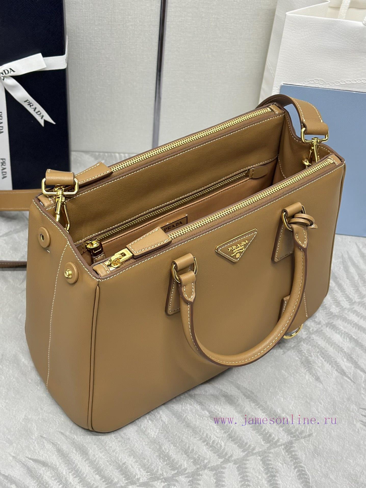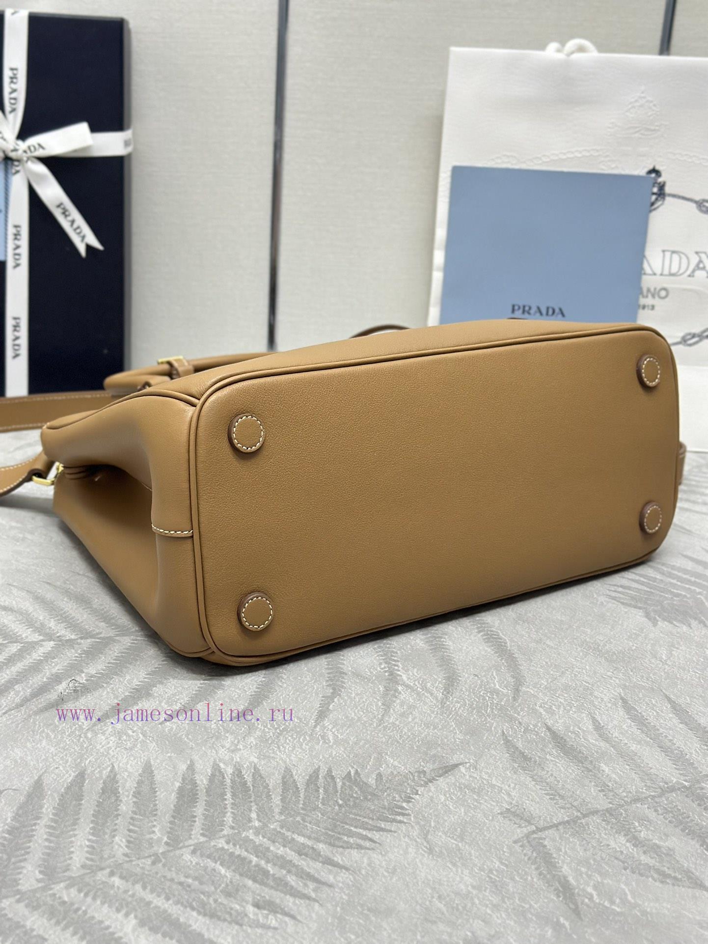 The new plain killer bag for spring and summer 2024, measuring 1ba27432cm, is made up of over 80 manually assembled independent parts, paying tribute to the boutique store opened in Milan’s Emmanuel II Gallery in 1913. This leather bag features a classic three compartment design and gold metal hardware accessories, adorned with the iconic triangular logo. It is made of soft sheepskin and comes with two inner pockets, one of which is a zipper pocket and the other is made of soft sheepskin. The bottom has four leather foot studs (this model is large and does not come with packaging)Dimensions: Height 22.5cm, Width 32cm, Length 13.5cm