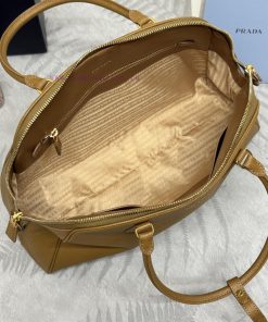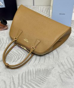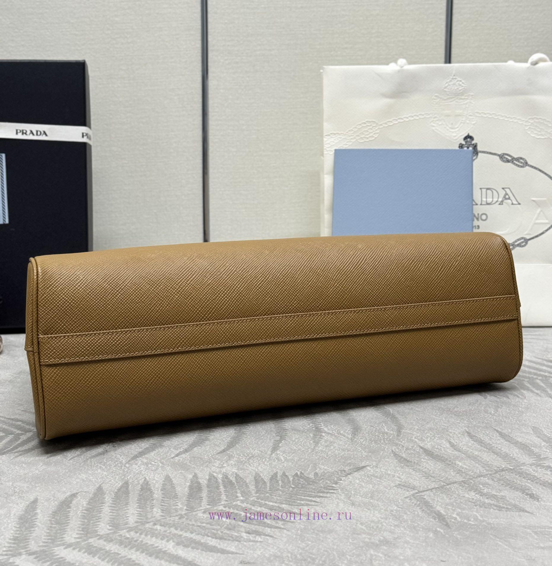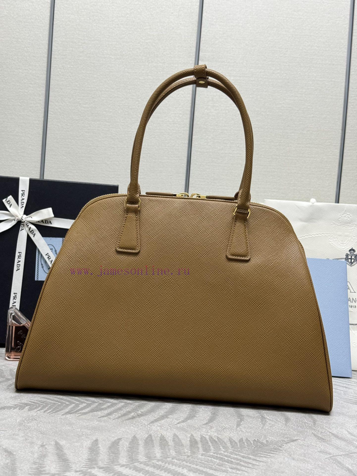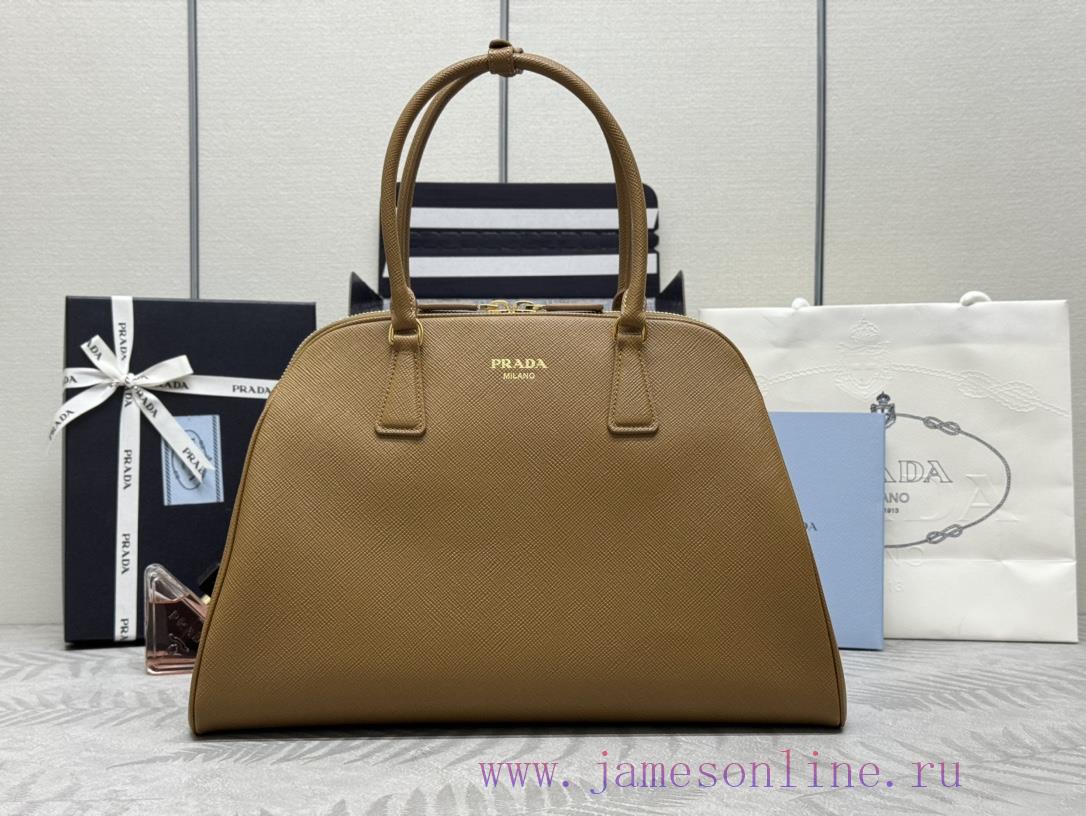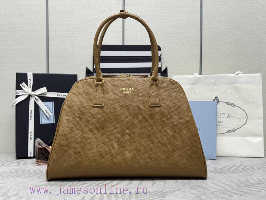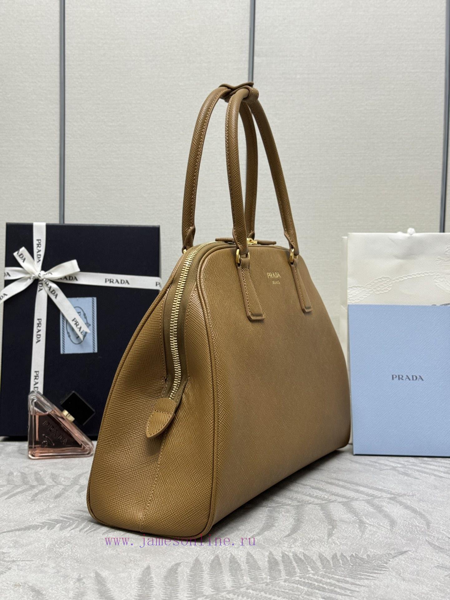 This exquisite handbag is made of Saffiano leather and features a shoulder and back handbag with imported cross grain cowhide. The design is crisp, with recognizable cross grain and waxed finish to enhance the style. It is simple and neat, paired with gold toned metal hardware accessories. The front is decorated with elegant letter logo embossed zipper opening and closing bag mouth, and the logo printed nylon lining is matched with two inner pockets, one of which has a zipperDimensions: Height 26 x Width 40 x Length 12cm(This product is too long and does not come with packaging)