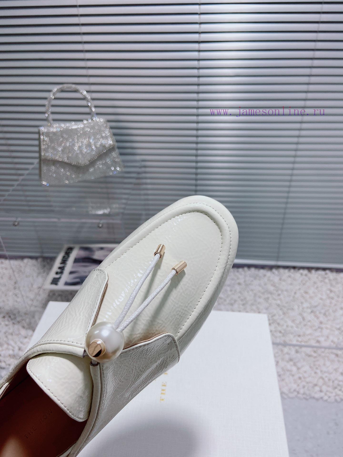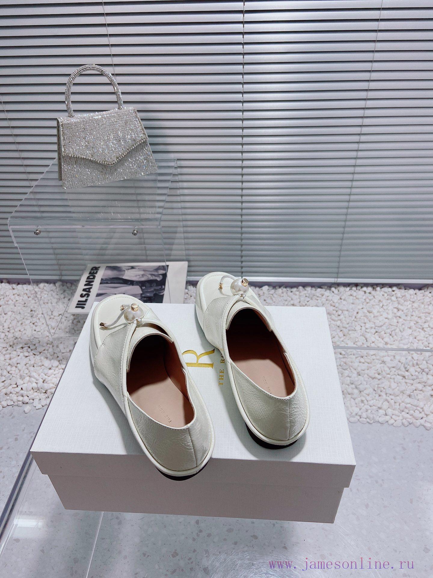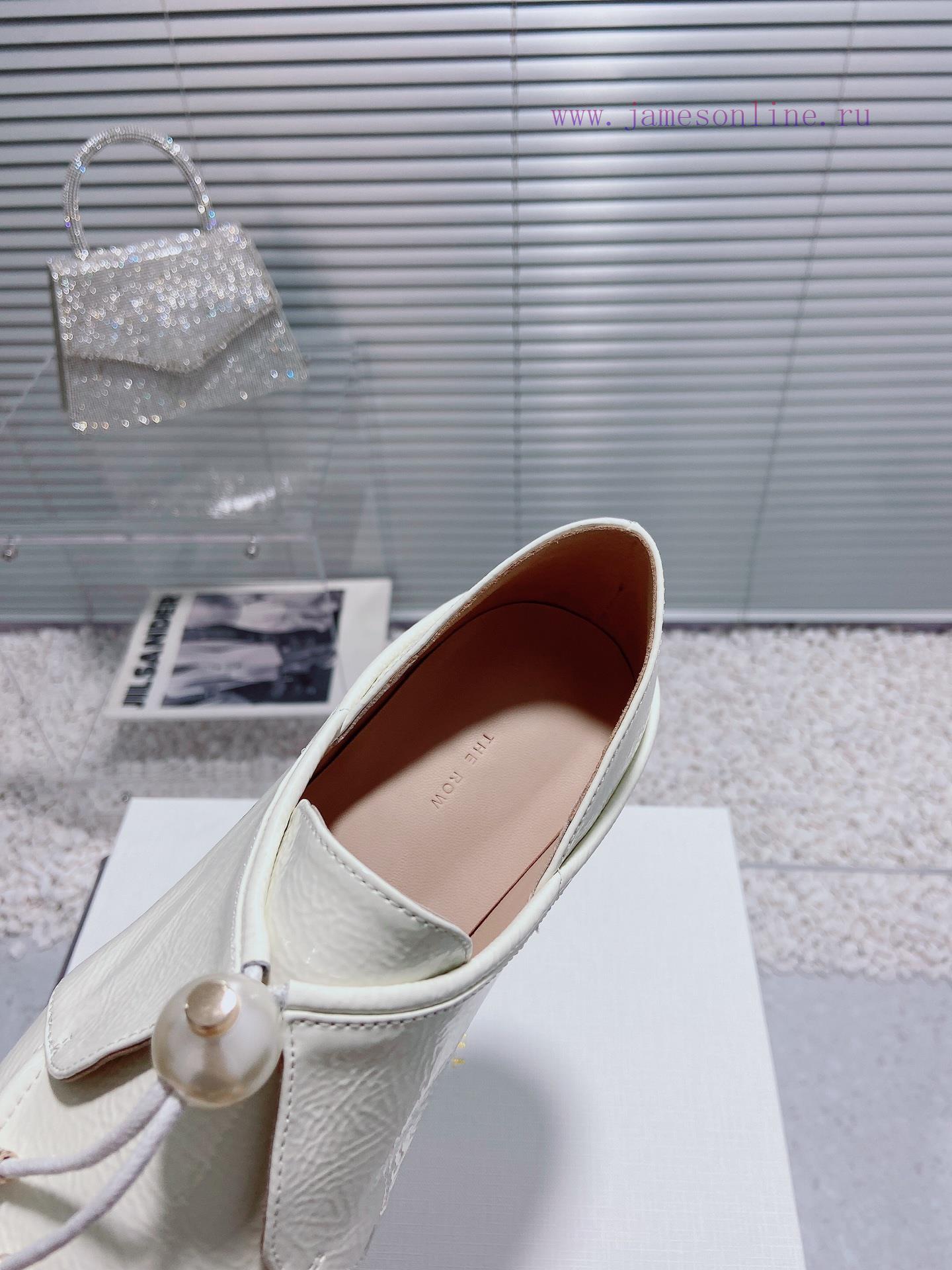 Top Of The Line The Row New Simple And Fashionable Pearl Lace Up Wrinkled Patent Leather Single i50ita4b