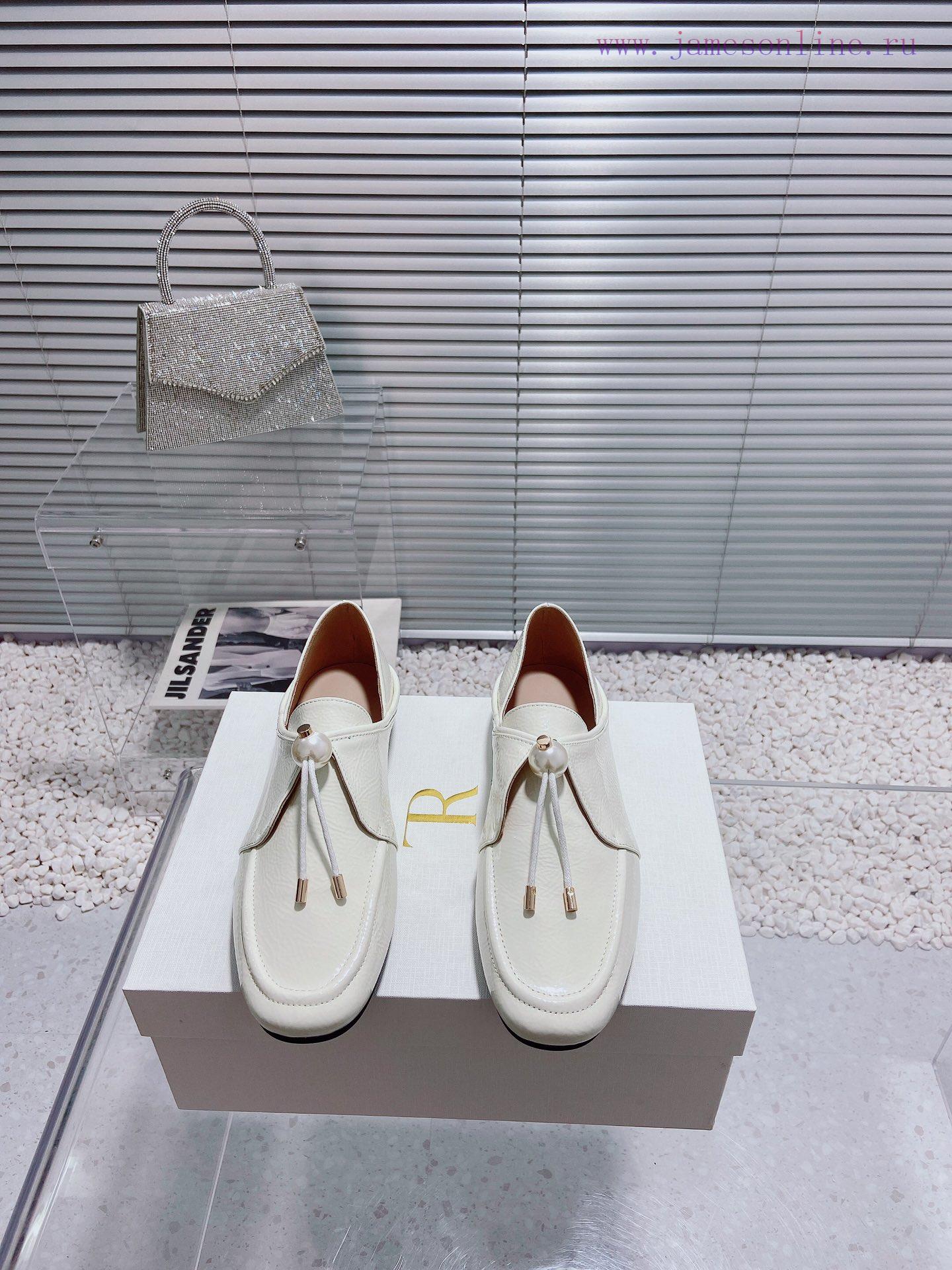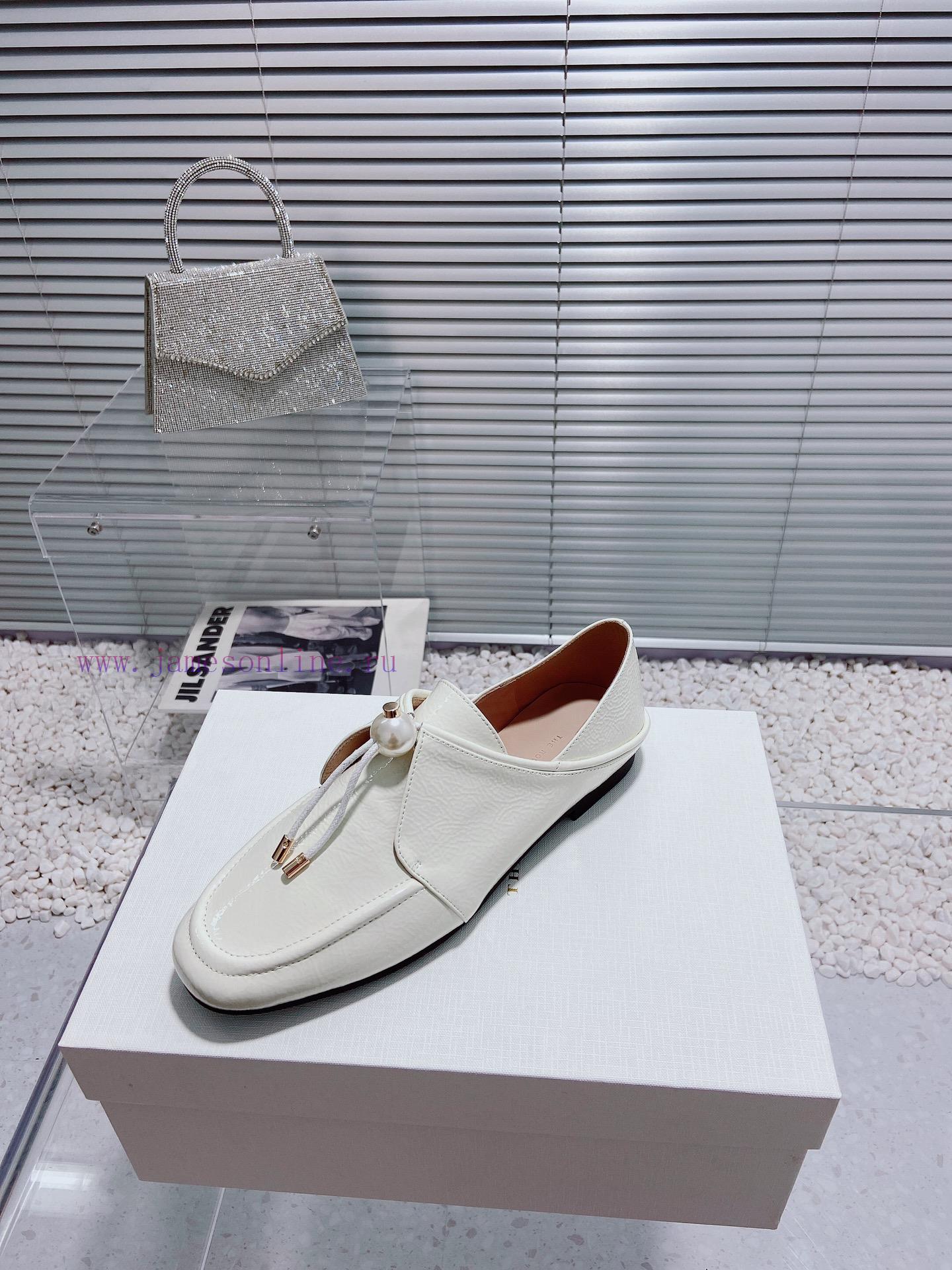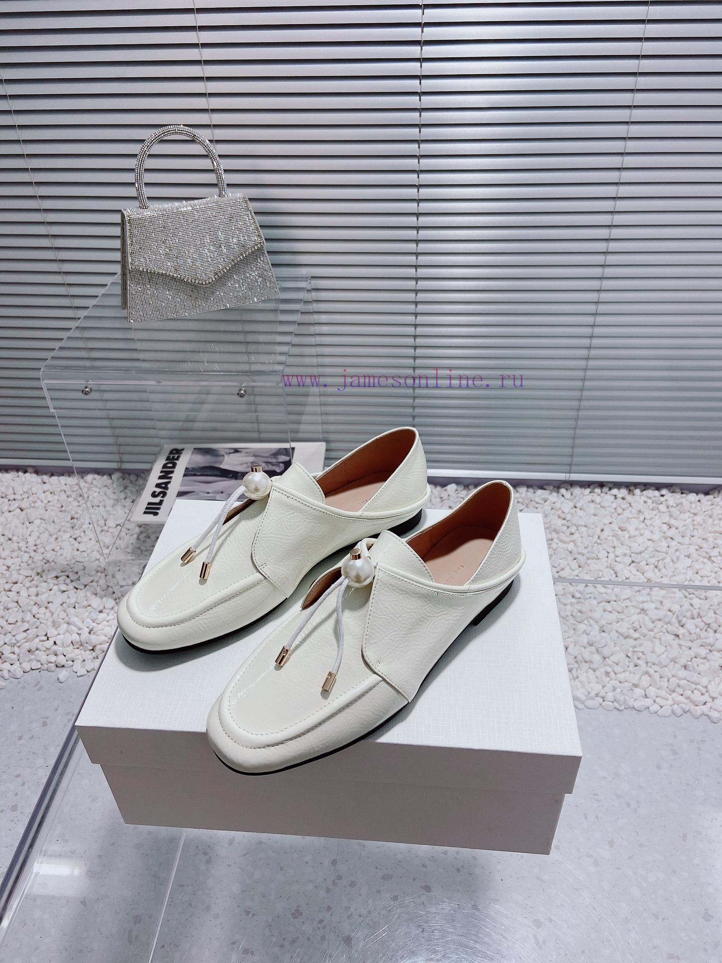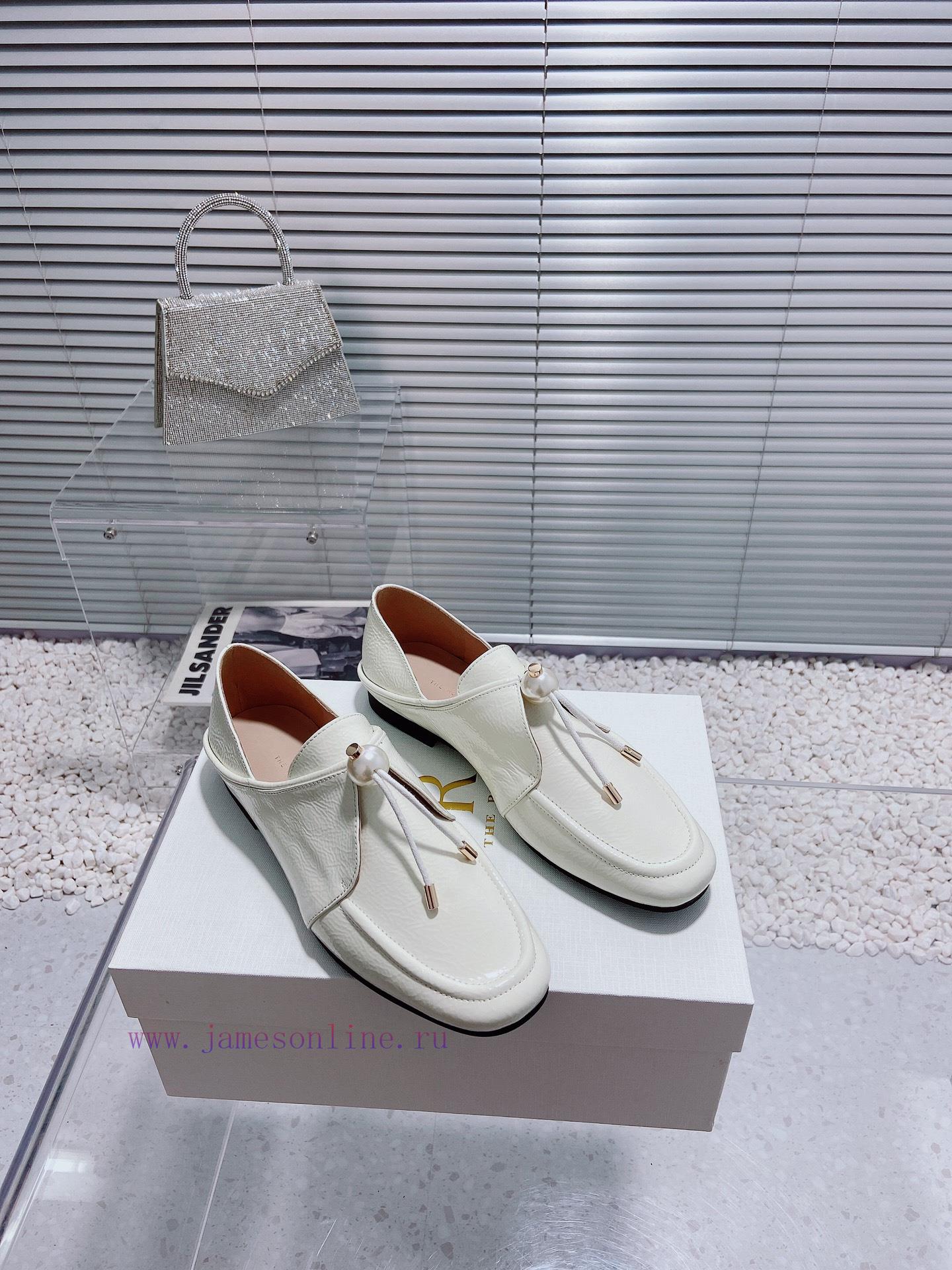 Top Of The Line The Row New Simple And Fashionable Pearl Lace Up Wrinkled Patent Leather Single i50ita4b