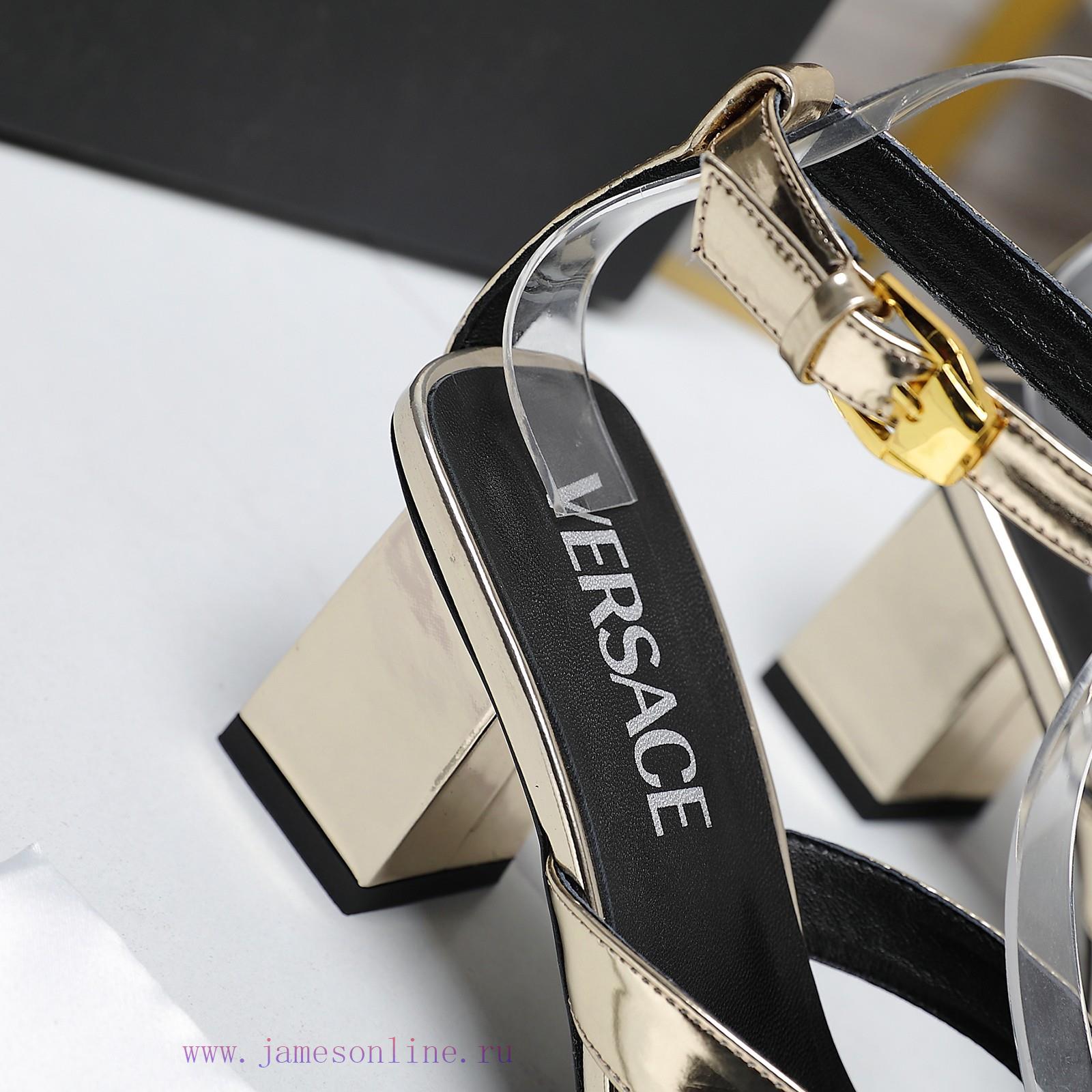 Versace Fashion Show New [Sun] [Sun] [Sun] Medusa New Low Waterproof Platform Sandals Lacquer Leather+Brand’s Medusa Head Decoration Each finished product is like an artwork, pleasing to the eye with classic color matching, top-notch art and design, high cooling without sharpness, fashionable yet not vulgar, popular overseas, highly recommended by well-known Instagram bloggers, wholeheartedly recommendedUpper metal leather+patent leatherImported sheepskin insideHeight 6.5cmLarge leather soleSize 35-4240.41.42 Customized Non refundablePriceComplete set of original packaging