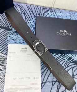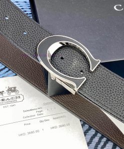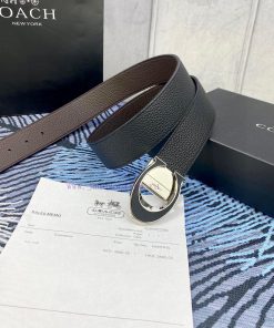 Width 3.7cm COACH double-sided lychee pattern belt with self cutting length. Made of top-quality imported double-sided cowhide, it can be worn on both sides to add your business charm