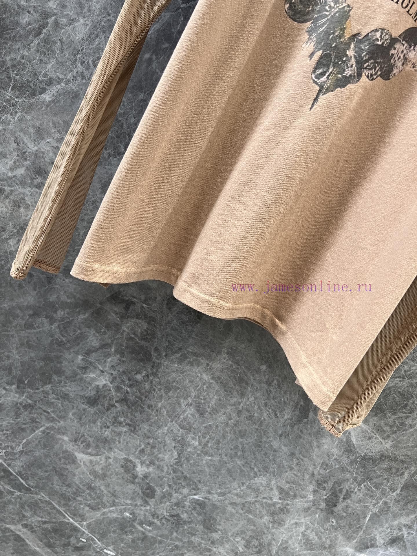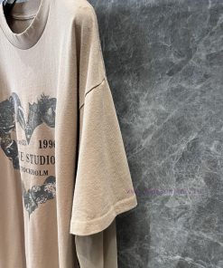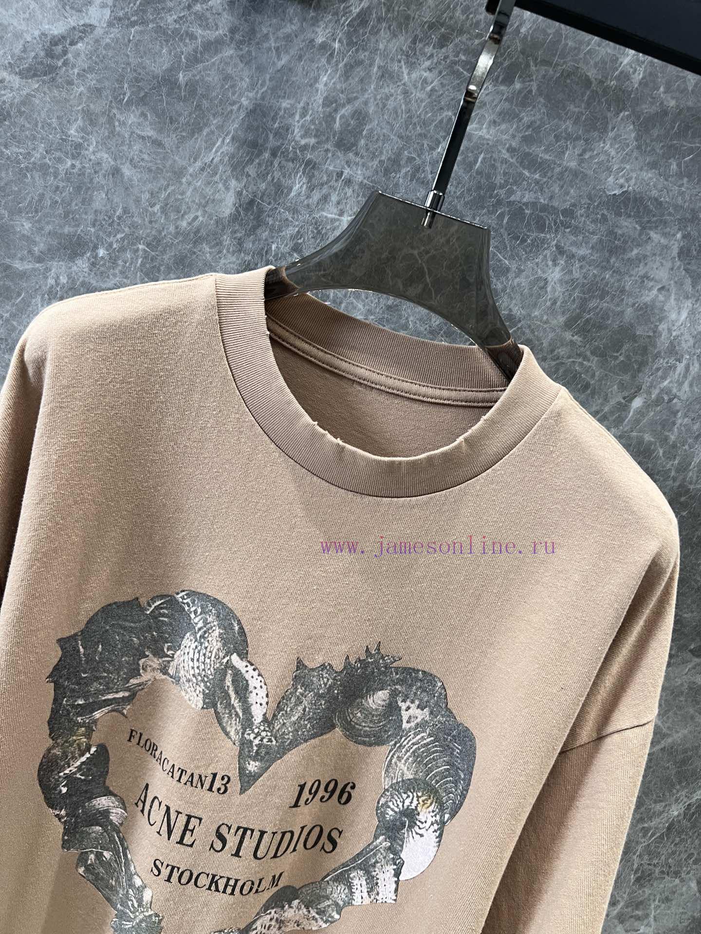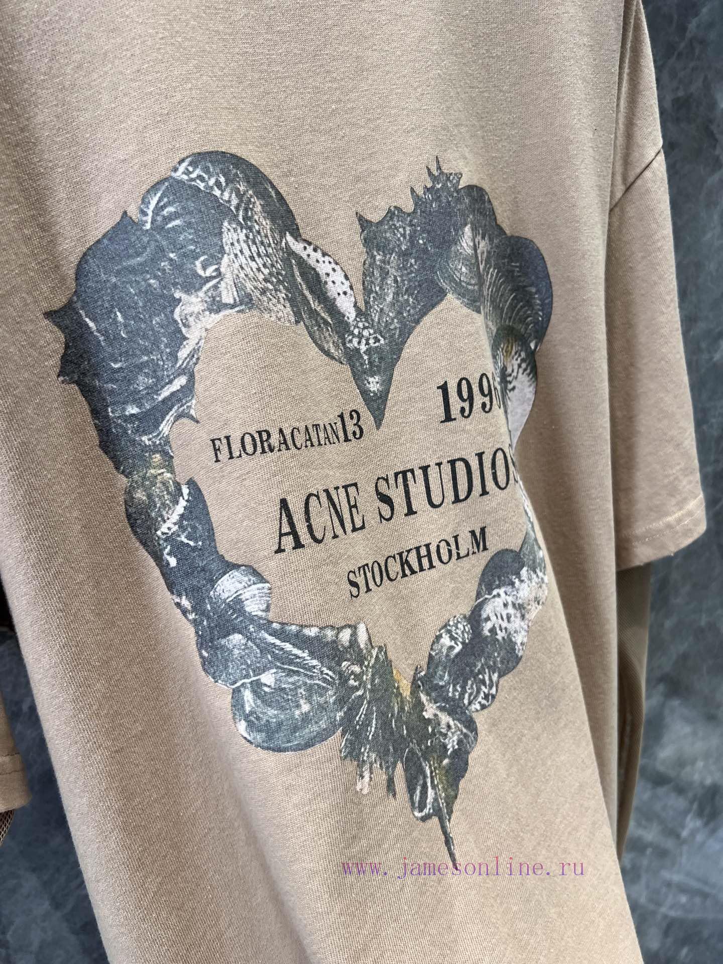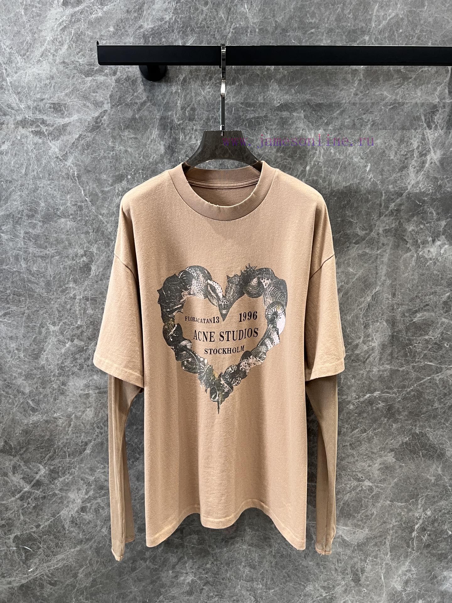 ZT60553 Acne Studios 25Ss Early Spring New Love Printed Loose Fake Two piece Long Sleeve Mesh T-shirt | The print and overall color tone of the product are very retro, combined with the destructive trimming of the collar and hem, making the vintage effect more unique and fashionable. The sleeves are made of elastic mesh and lace cuffs, which are very soft and elastic. The oversized version can accommodate all kinds of body shapes and lengths over the hips, and can be easily matched with various bottoms. The upper body is a fun girl in stock S/M/L